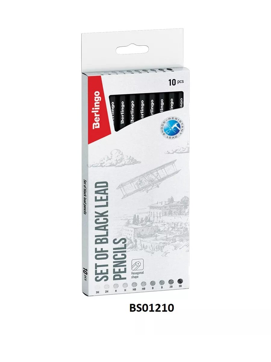 Набор карандашей ч/г Berlingo, 10шт., 3H-3B, заточен., картон. упак., европодвес интересное: