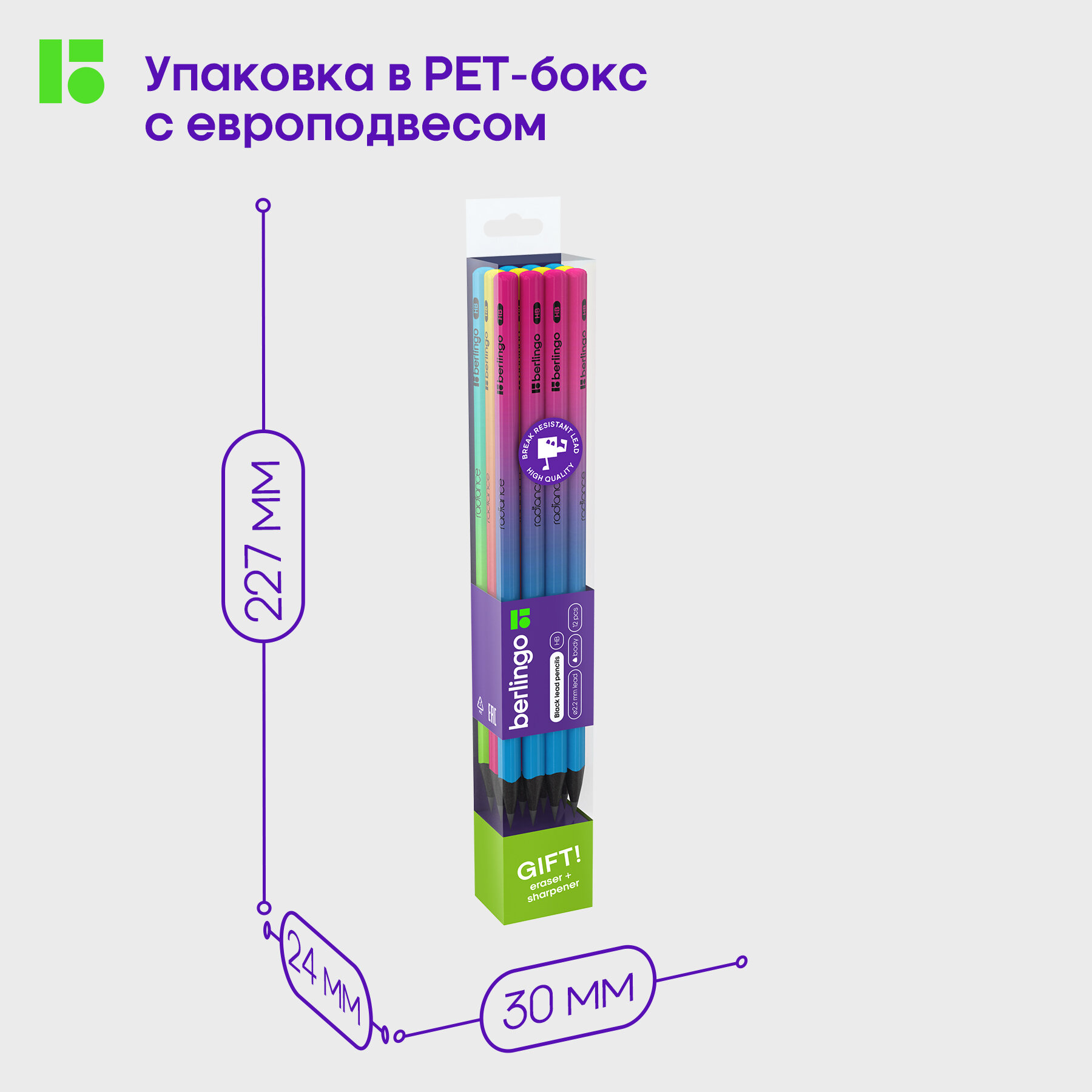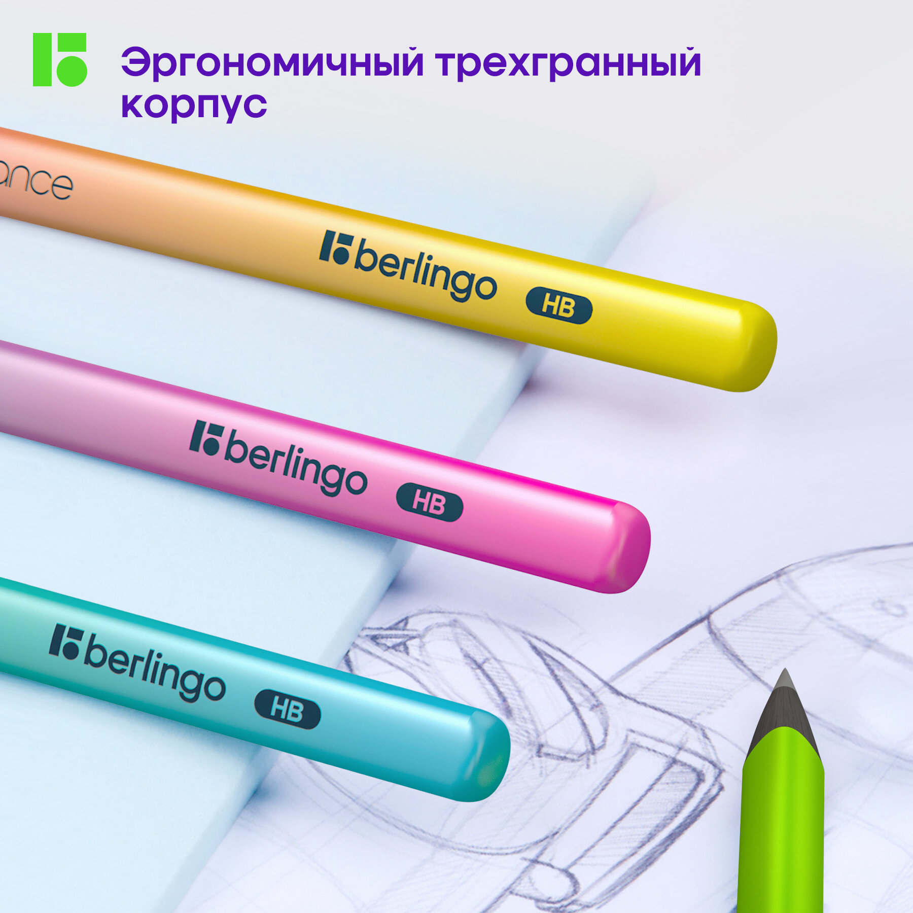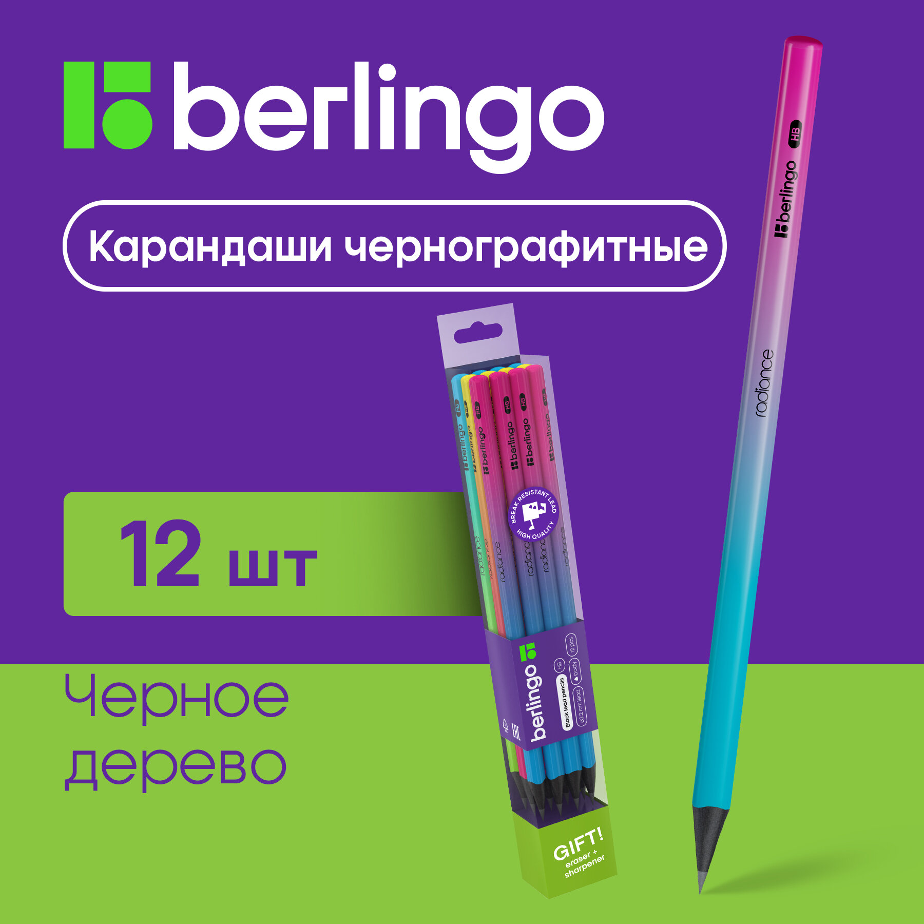 Купить Карандаши для школы простые HB с ластиком и точилкой / Набор чернографитных карандашей для офиса и рисования из 12 штук Berlingo "Radiance" / школьная канцелярия и принадлежности