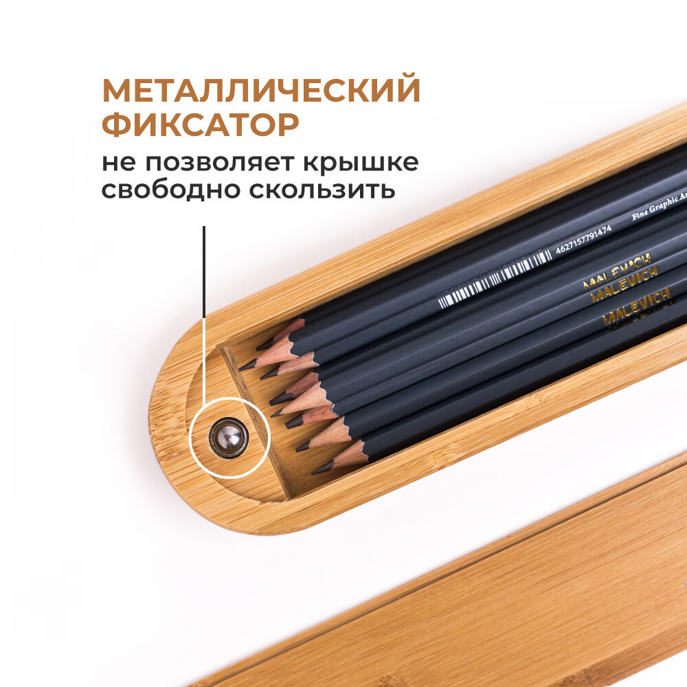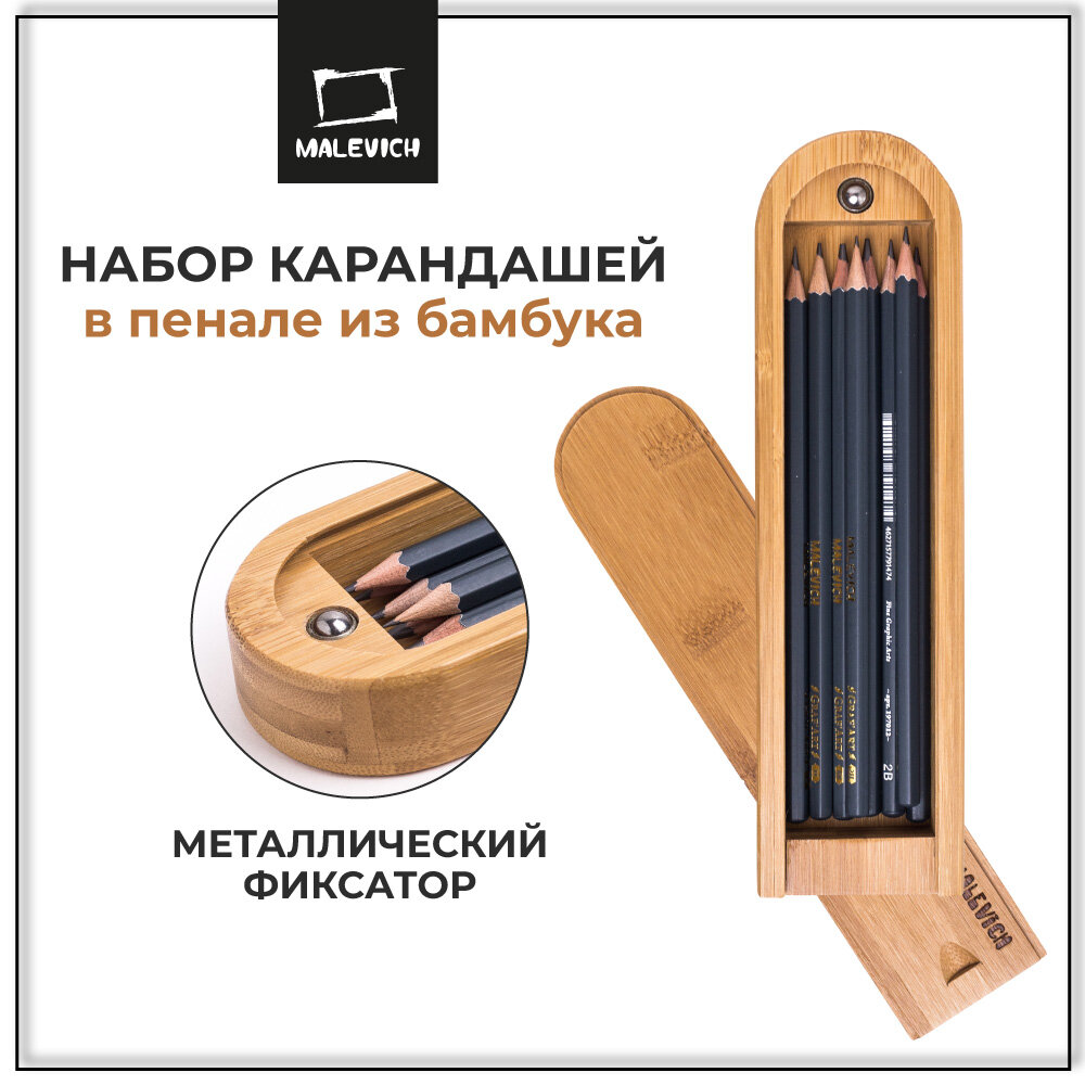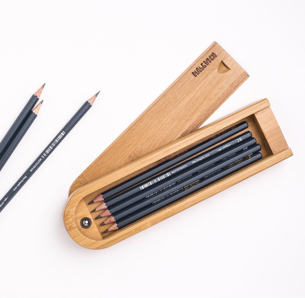 Набор чернографитных карандашей Малевичъ GrafArt 8 шт. в пенале из бамбука интересное: