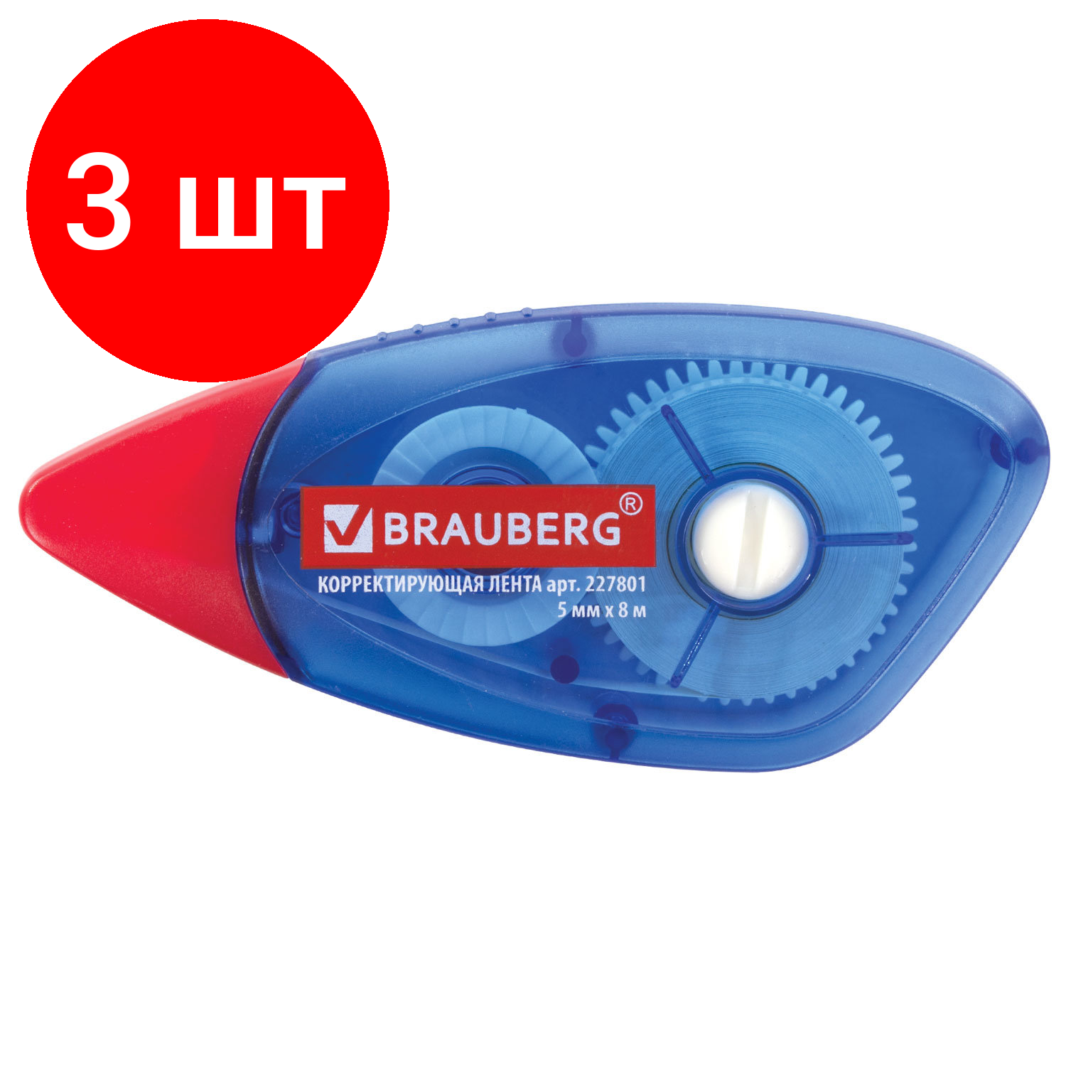 Купить Корректирующая лента/корректор/шрих/замазка Brauberg 5 мм х 8 м, корпус синий, механизм перемотки, блистер, 227801