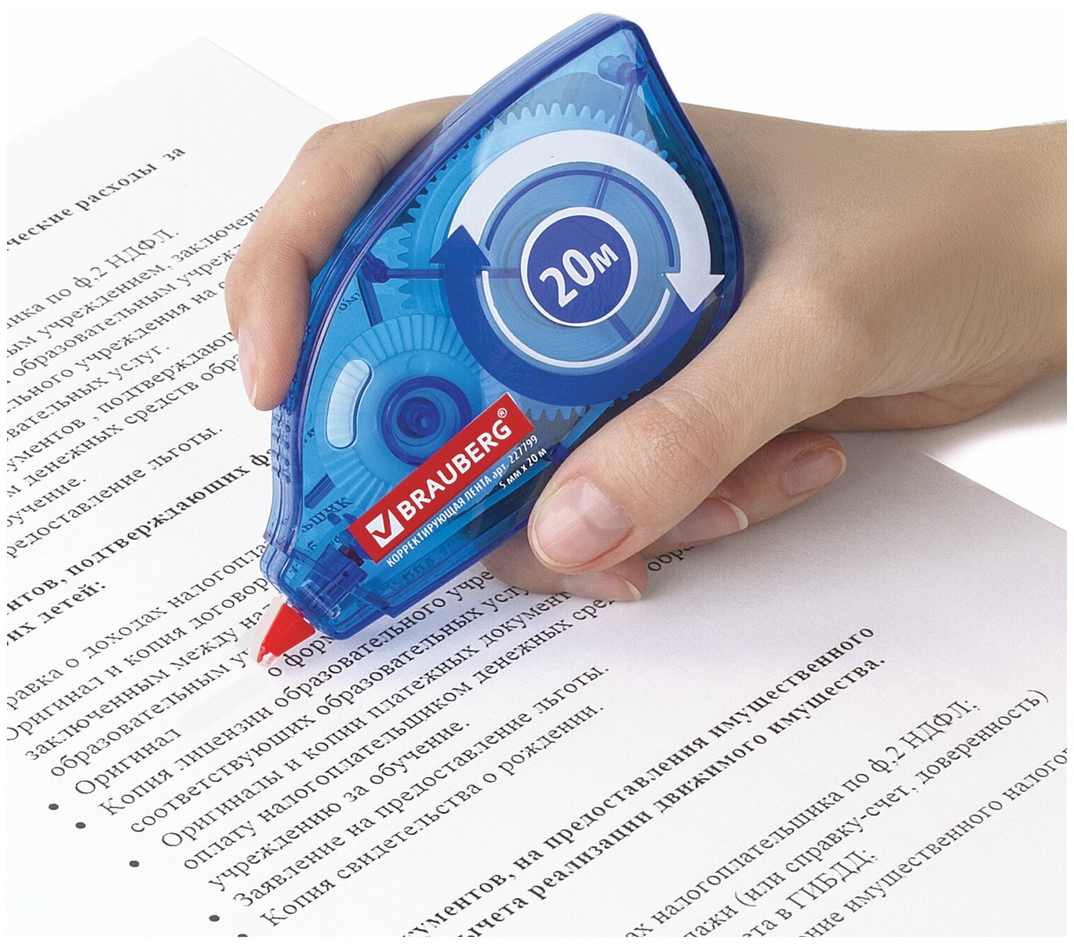 Корректирующая лента/корректор/шрих/замазка Brauberg 5 мм х 8 м, корпус синий, механизм перемотки, блистер, 227801 интересное: