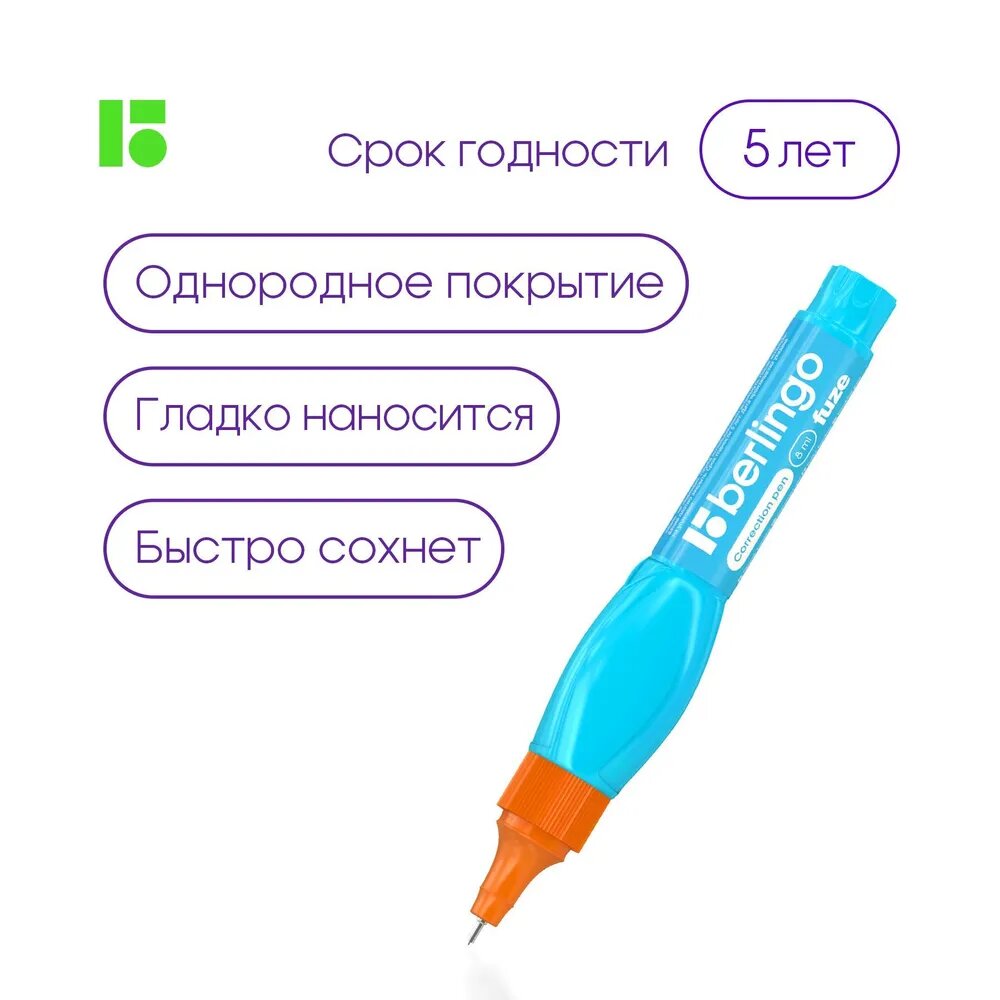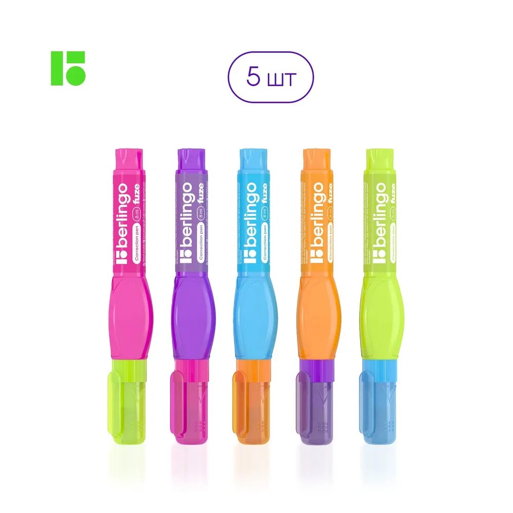 Замазка Berlingo Fuze, 08 мл, с металлическим наконечником, набор, 5 шт / карандаш-корректор для школы и офиса / корректирующая ручка интересное: