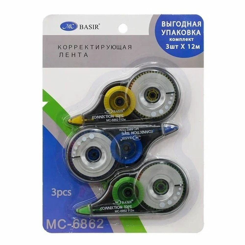 Купить Набор ленточных корректоров MC-Basir 3 шт по 12 метров, сухие корректирующие ленты, замазка для школы и офиса