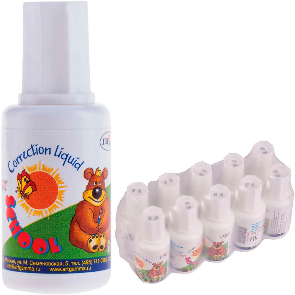 Корректирующая жидкость Гамма "Школьник", 20мл, с кисточкой (341004) интересное:
