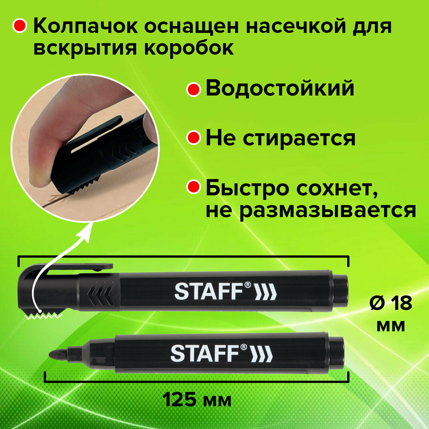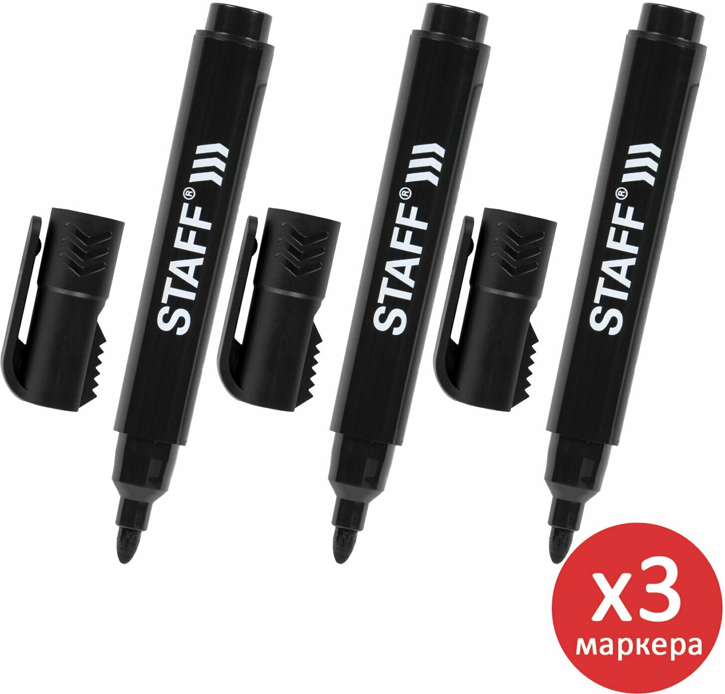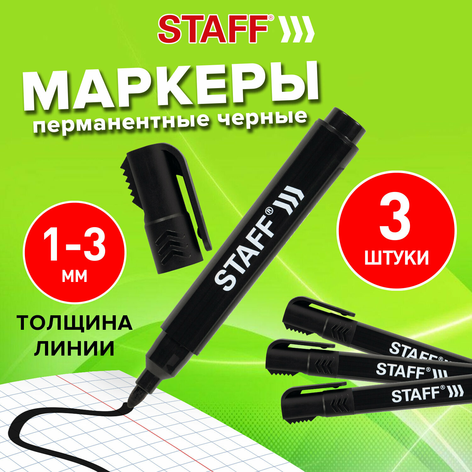 Маркеры перманентные (нестираемые) для рисования и письма черные, Комплект 3 штуки, колпачок для вскрытия коробок, Staff Pm-150, 880749 интересное: