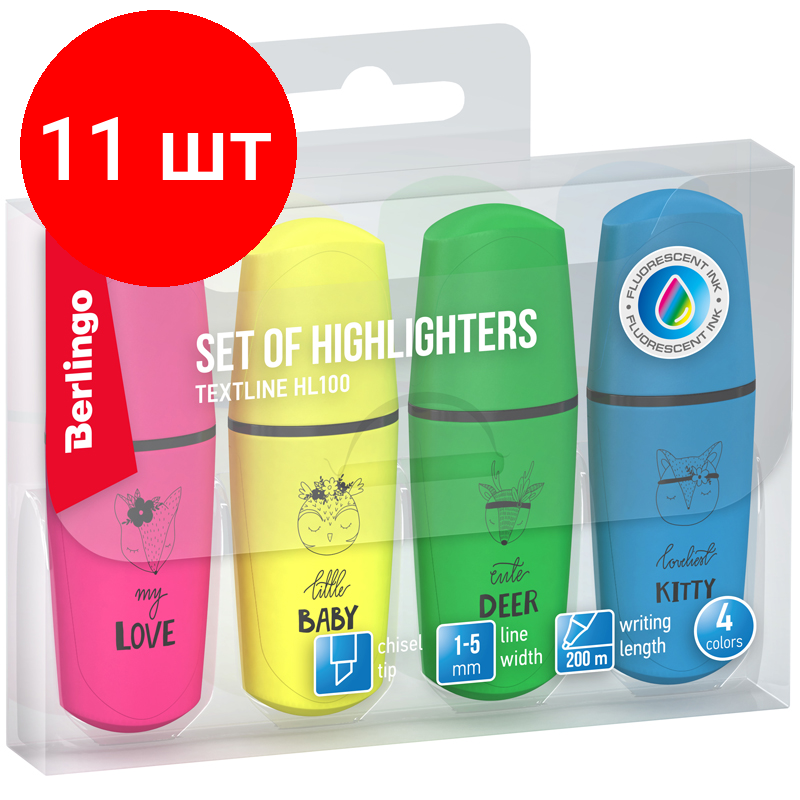 СохранитьКомплект 11 шт, Набор текстовыделителей Berlingo "Textline HL100" мини, 04цв., 1-5мм, европодвес интересное: