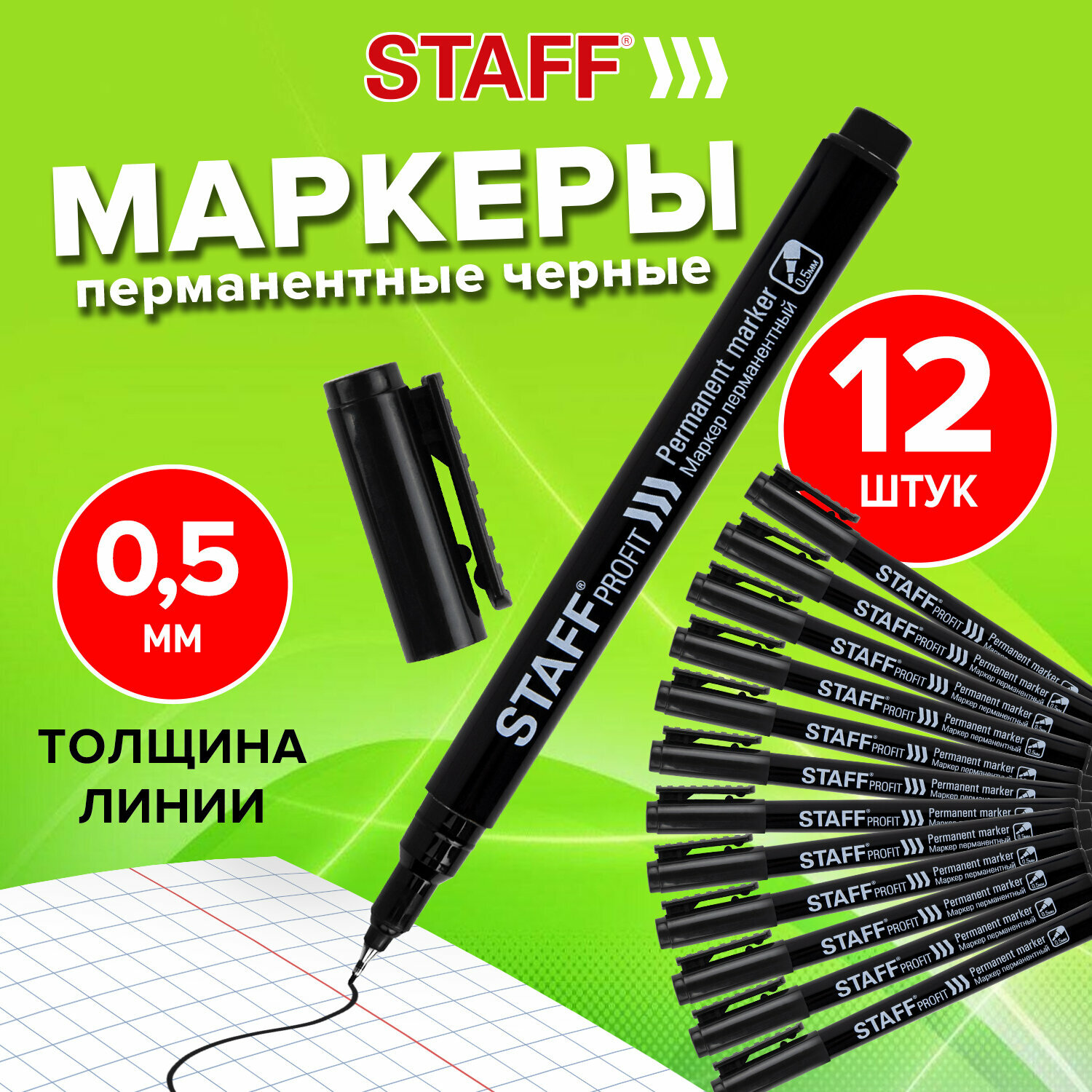 Маркеры перманентные (нестираемые) для рисования и письма черные, наконечник 0,5мм, Выгодный Комплект 12 штук, Staff Profit Pm-105, 880748 интересное: