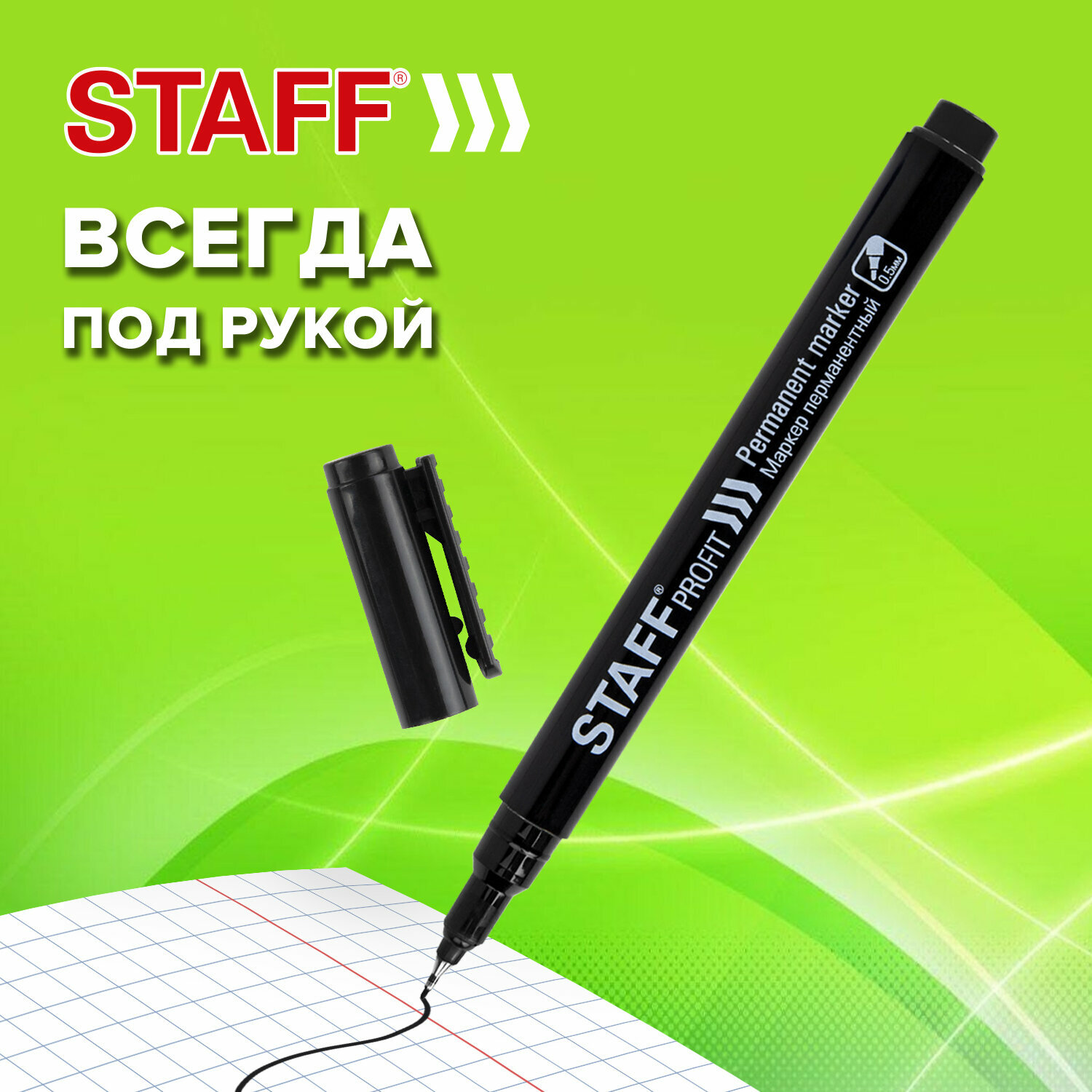 Купить Маркеры перманентные (нестираемые) для рисования и письма черные, наконечник 0,5мм, Выгодный Комплект 12 штук, Staff Profit Pm-105, 880748