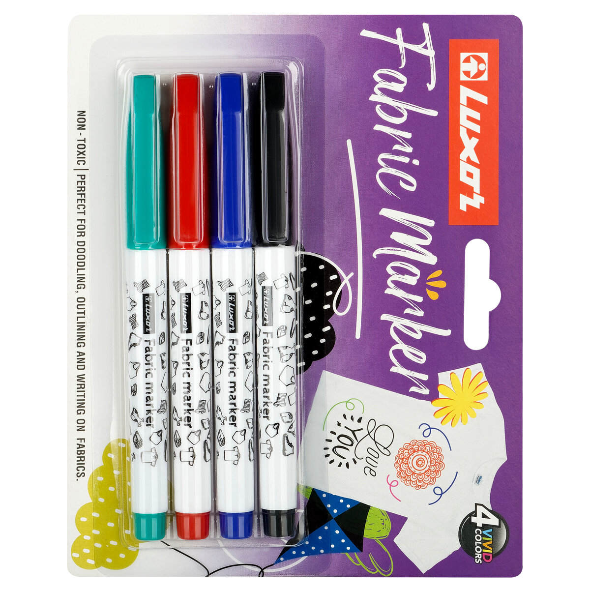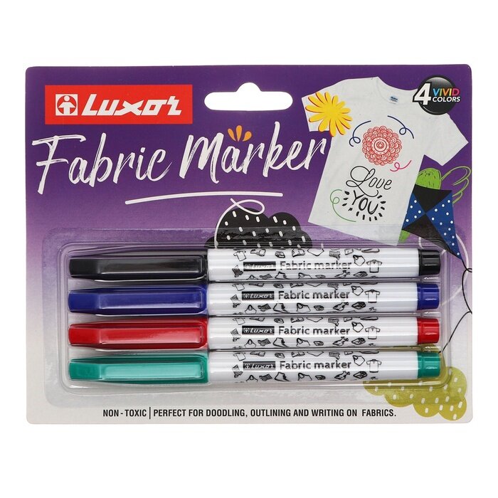 Купить Набор маркеров для ткани Luxor "Fabric", пулевидный, 1-2мм, 4цв., блистер
