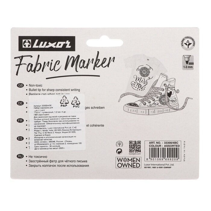 Ниже Вы можете прочитать отзывы на Набор маркеров для ткани Luxor "Fabric", пулевидный, 1-2мм, 4цв., блистер, ознакомится с подробными характеристиками, посмотреть интересные обзоры и фотографии на Набор маркеров для ткани Luxor "Fabric", пулевидный, 1-2мм, 4цв., блистер.