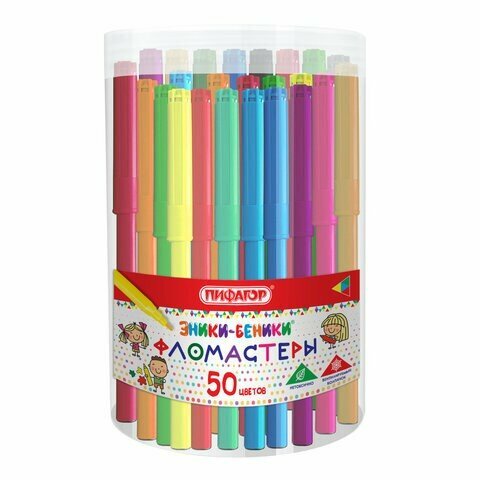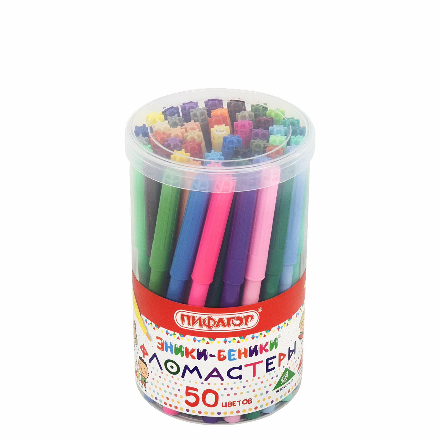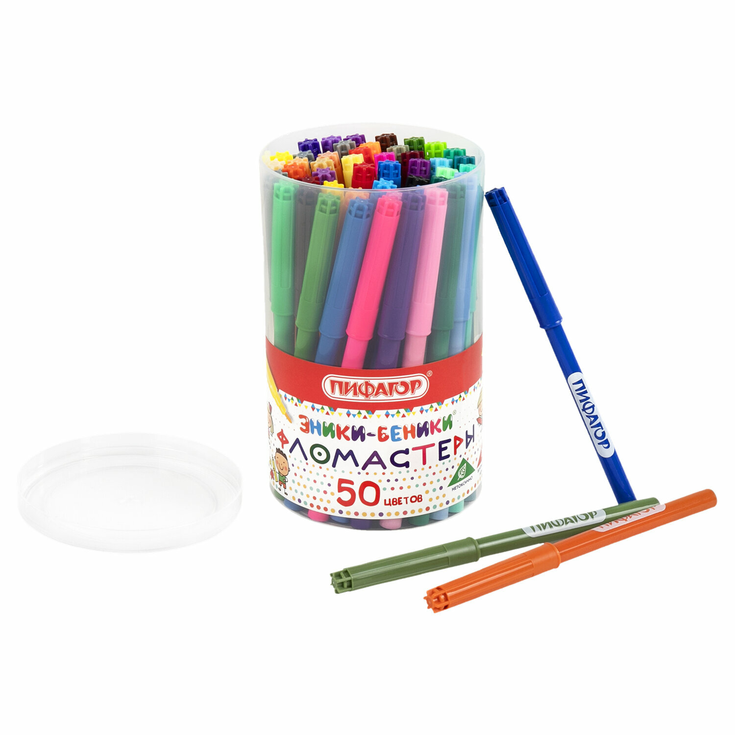 Купить Фломастеры для рисования для детей Эники-беники, набор 50 цветов, вентилируемый колпачок, Пифагор, 152455