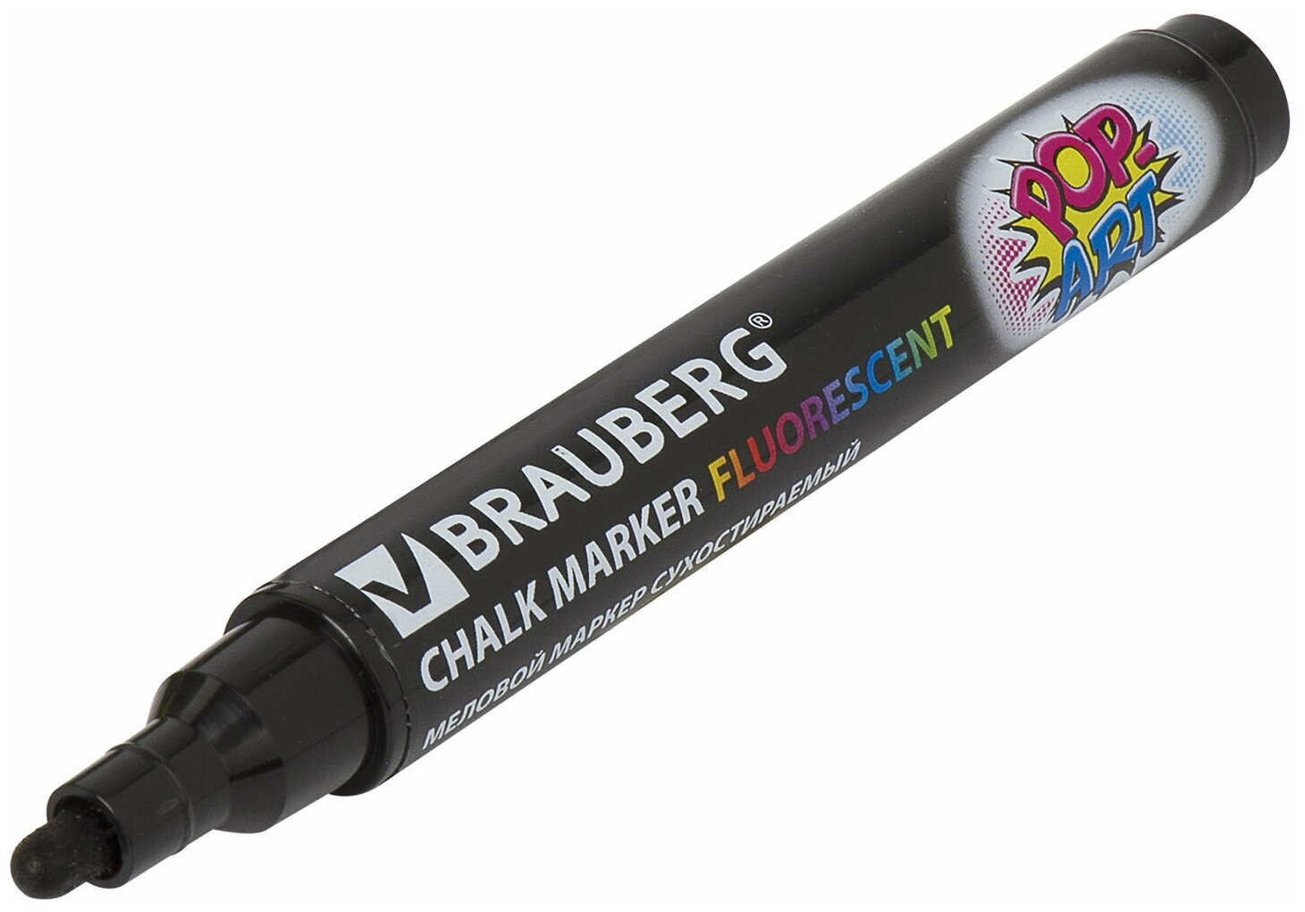 Маркер меловой "POP-ART" черный, 5 мм, стираемый, для гладких поверхностей, BRAUBERG, 151534