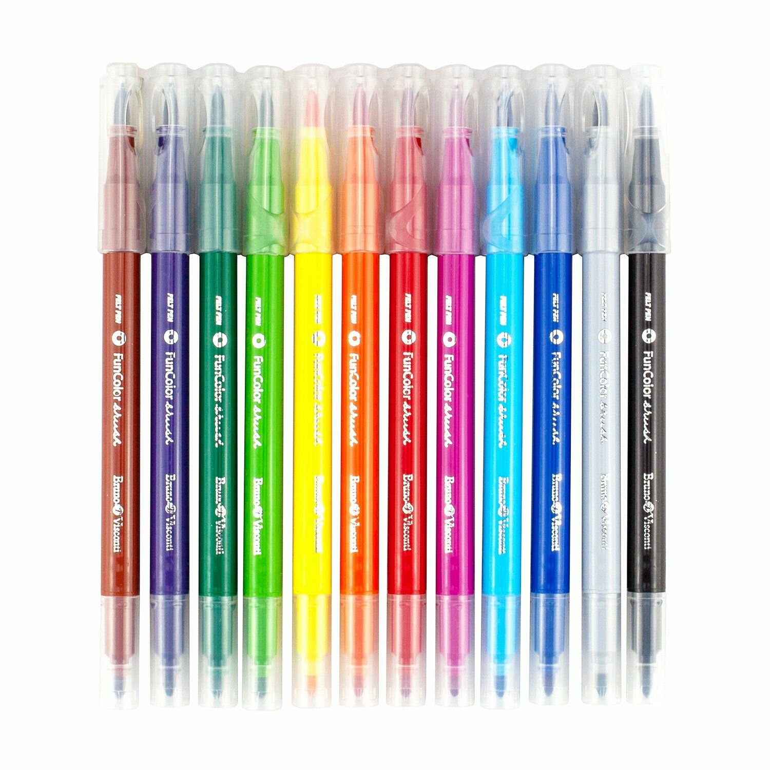 Купить Фломастеры-кисточки двусторонние "FUNCOLOR" 12 цветов, в пластиковом пенале