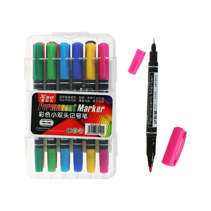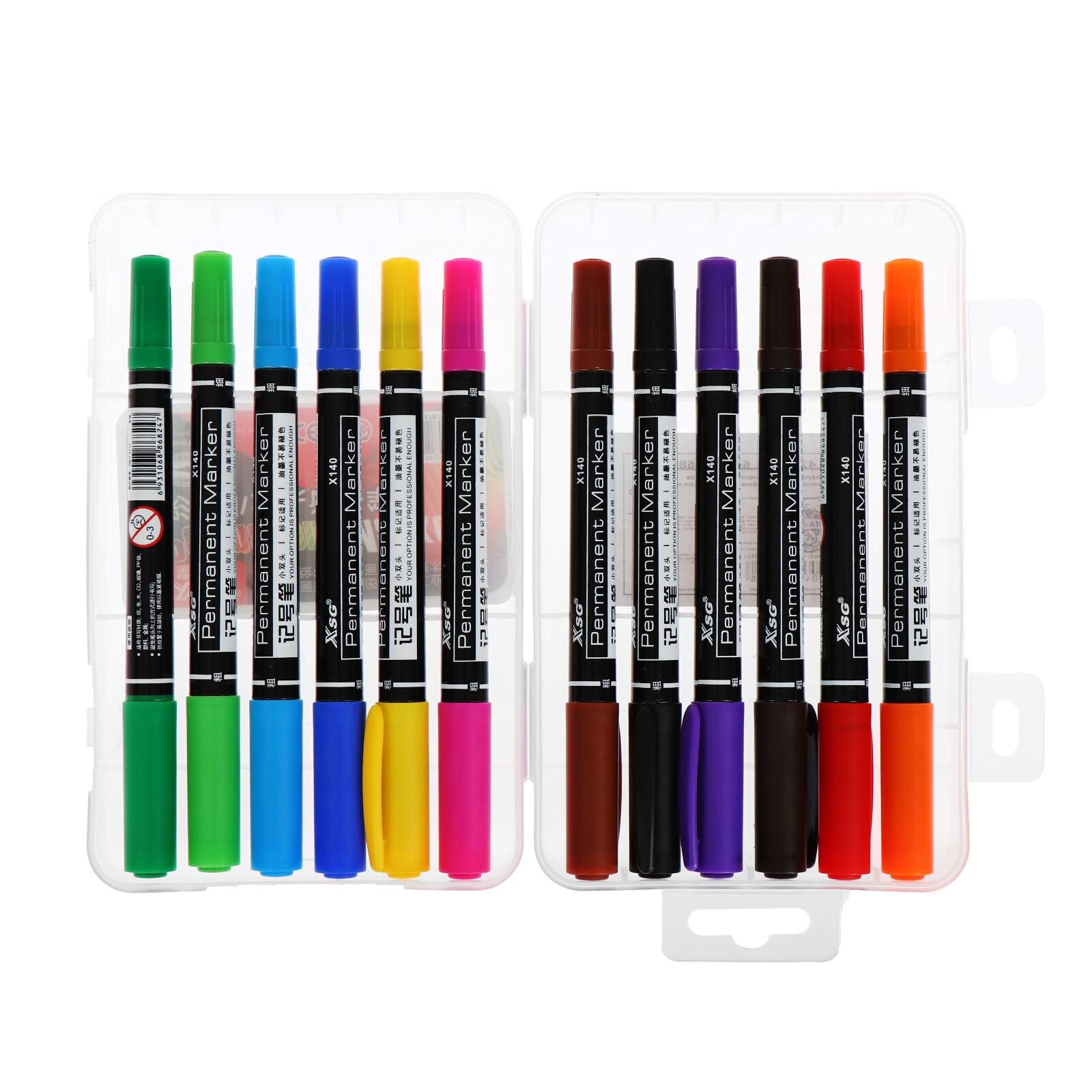 Купить Набор маркеров перманентных 12 цветов двусторонних 0,5мм/1,0мм в пластиковом пенале 4775233