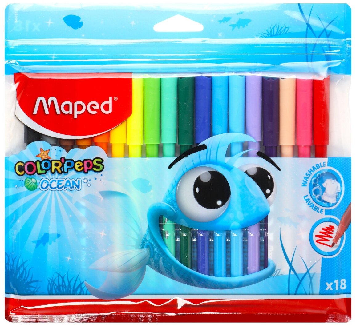 Фломастеры Maped COLOR'PEPS OCEAN,супер-смываемые,18цв/наб,845721