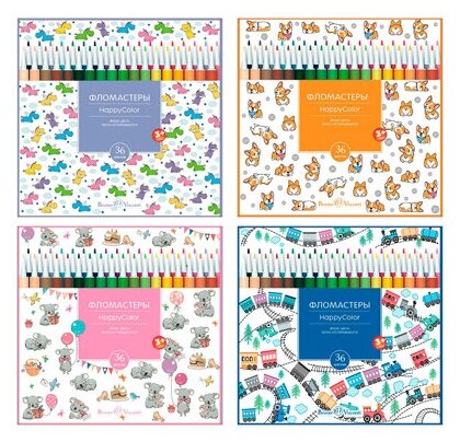 Купить Фломастеры Bruno Visconti, 36 цвета, 4 вида , HappyColor, Арт. 32-0053. Цена за 1 набор.