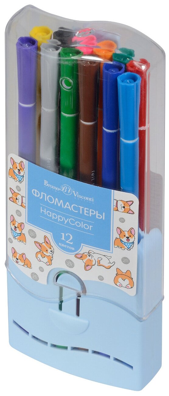 Фломастеры Bruno Visconti, 12 цветов, 2 вида, пластиковый пенал, HappyColor, Арт. 32-0036 интересное: