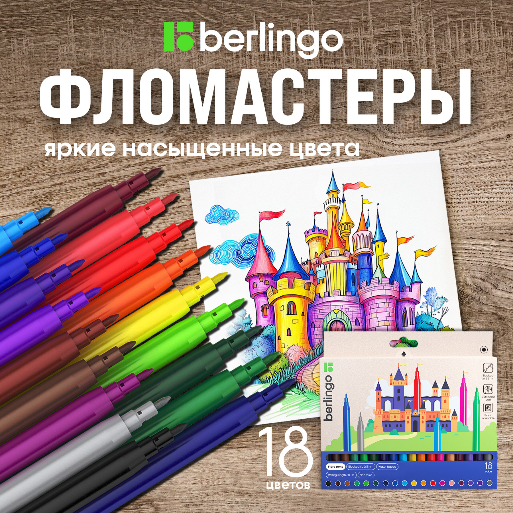 Фломастеры Berlingo "Замки", 18 цв., смываемые, картон.коробка с европодвесом интересное: