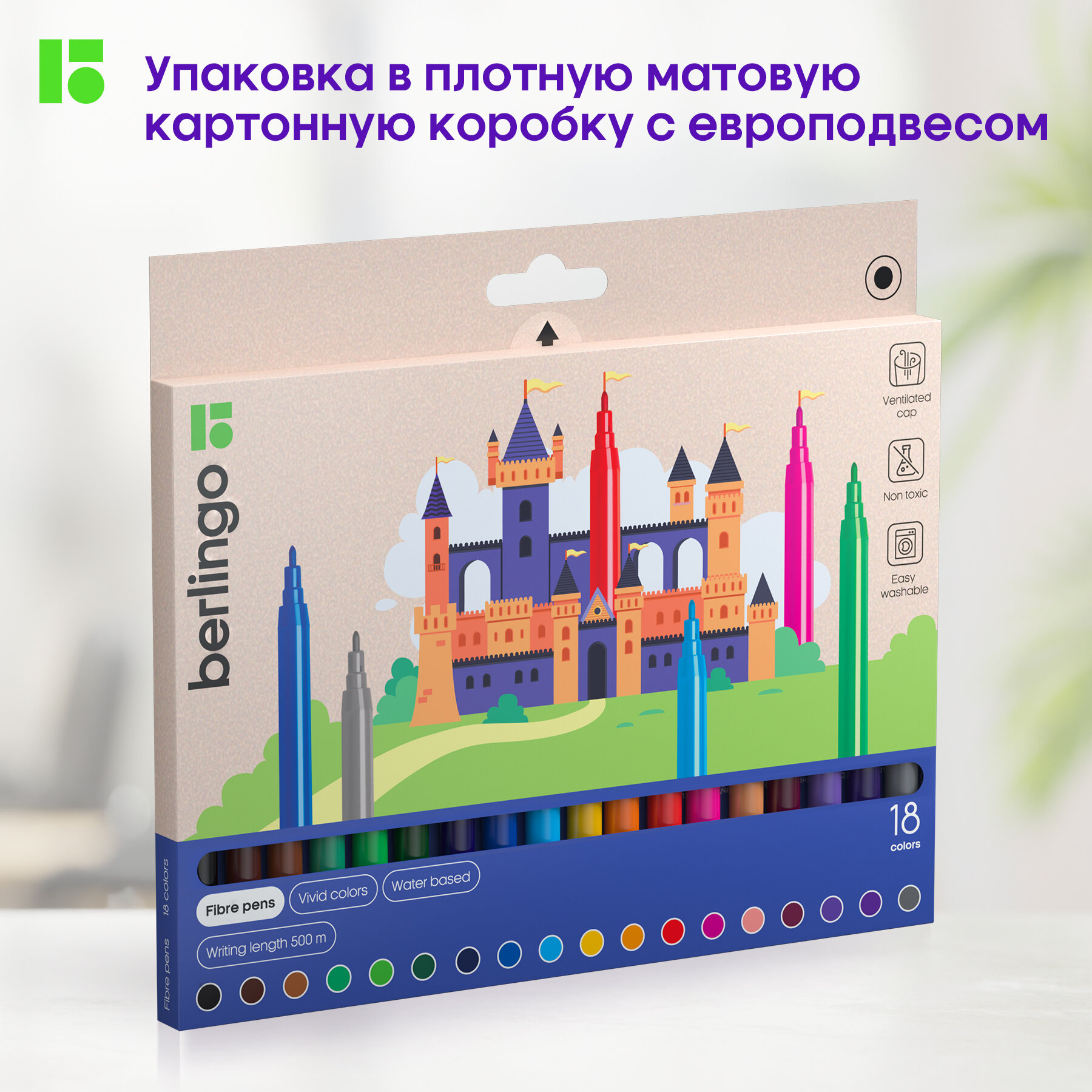 Купить Фломастеры Berlingo "Замки", 18 цв., смываемые, картон.коробка с европодвесом