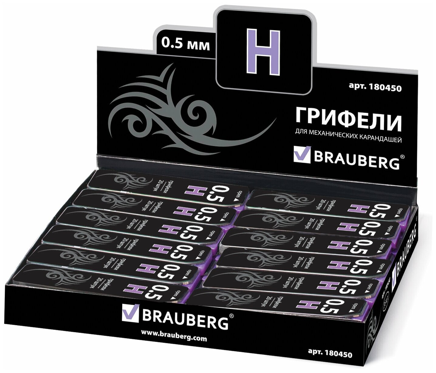 Купить Грифели запасные 0,5 мм, H, BRAUBERG, комплект 20 шт., "Black Jack", 180450