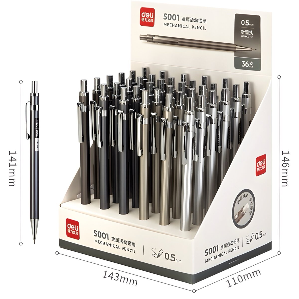 Купить Механический карандаш Xiaomi Deli S001 с металлическим корпусом (толщина - 0.5 мм, твердость - HB)
