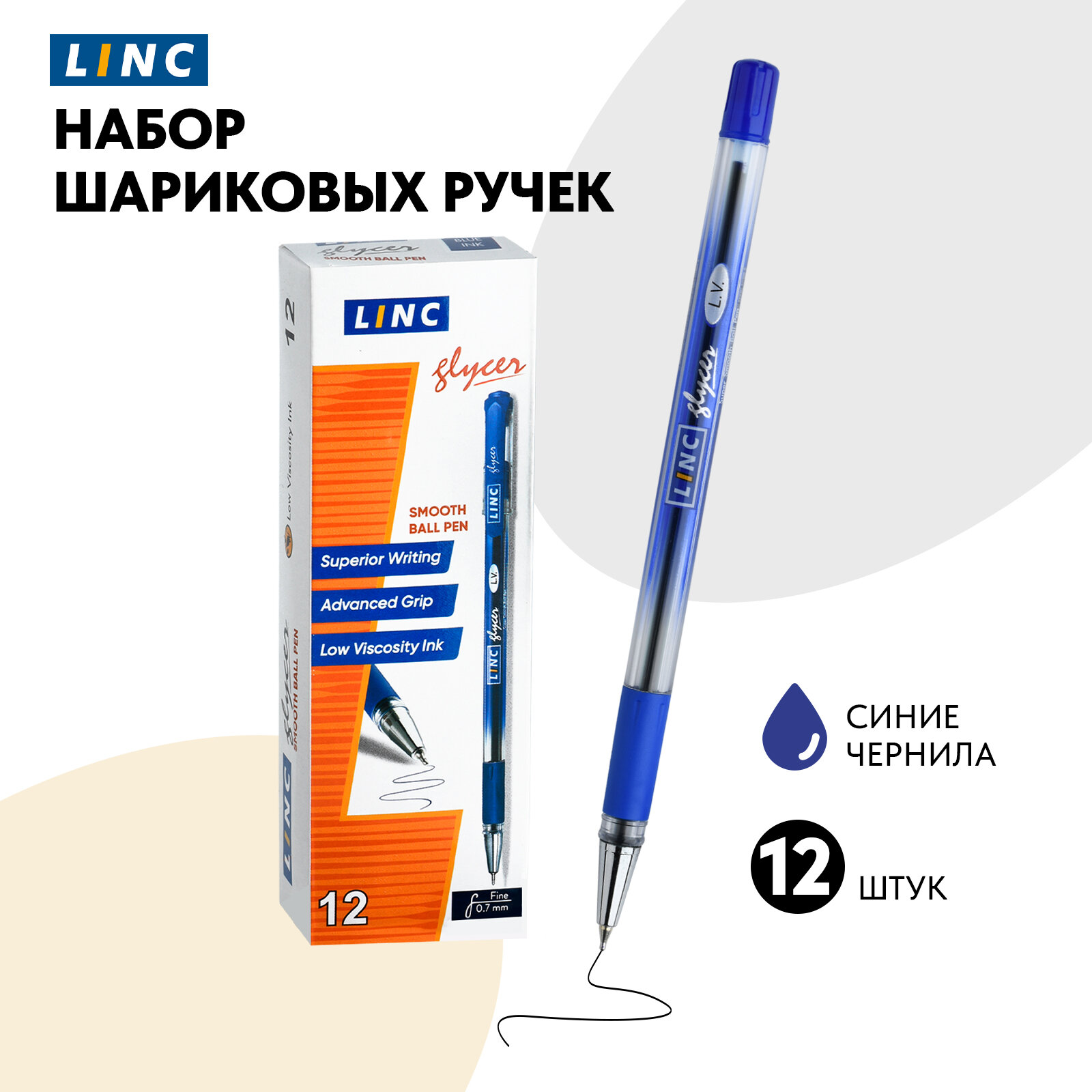Ручки шариковые синие, набор 12 штук, Linc Glycer наконечник конус 0,7 мм интересное: