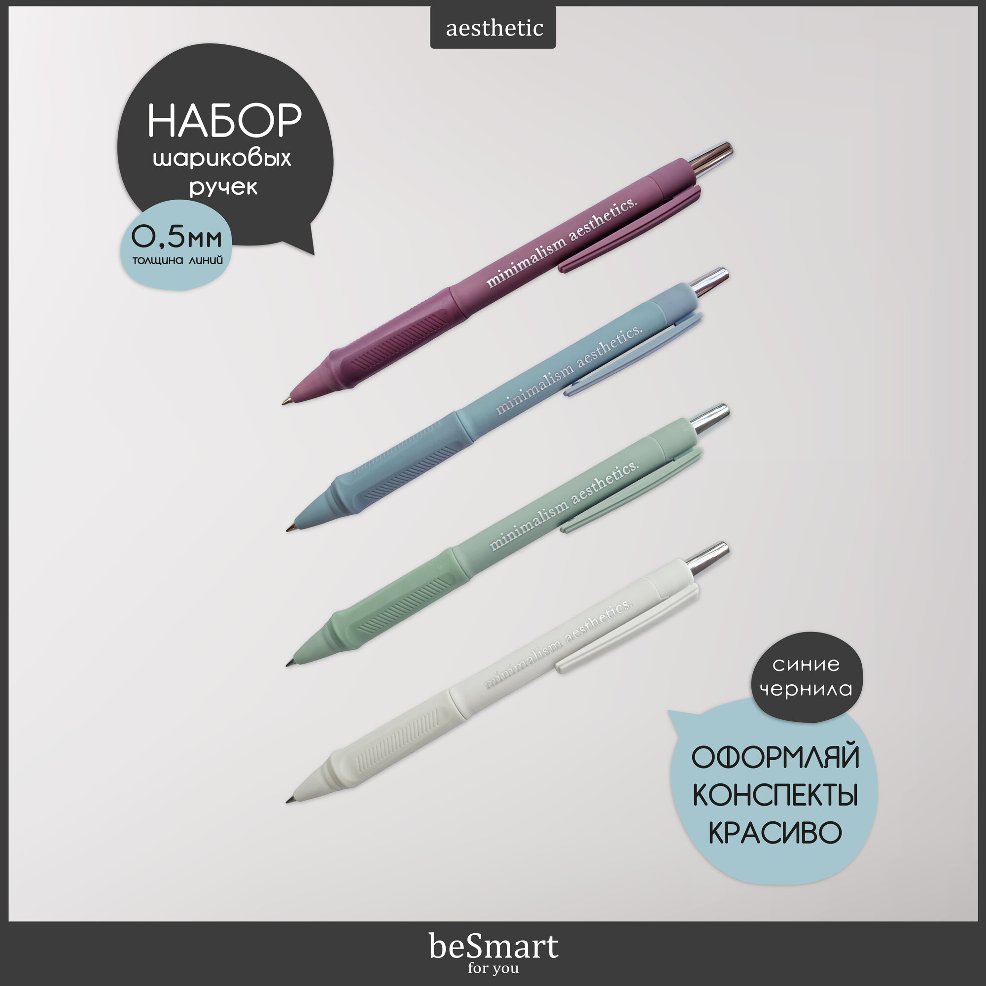 Ручка шариковая автоматическая beSmart "Aesthetics" синие чернила, толщина линии 0,5 мм, набор 4 шт №2