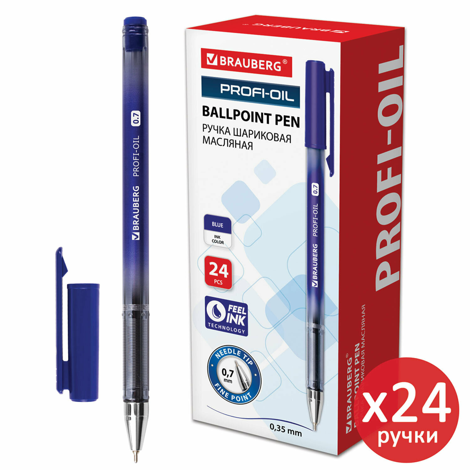 Ручка шариковая масляная BRAUBERG Profi-Oil, комплект 24 штуки, синяя, 0,7 мм, линия 0,35 мм, 880013