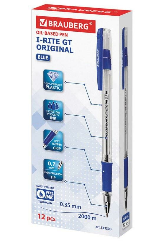 Ручка шариковая масляная с грипом BRAUBERG i-Rite GT, комплект 12 штук, синяя, узел 0,7мм, 880178 интересное: