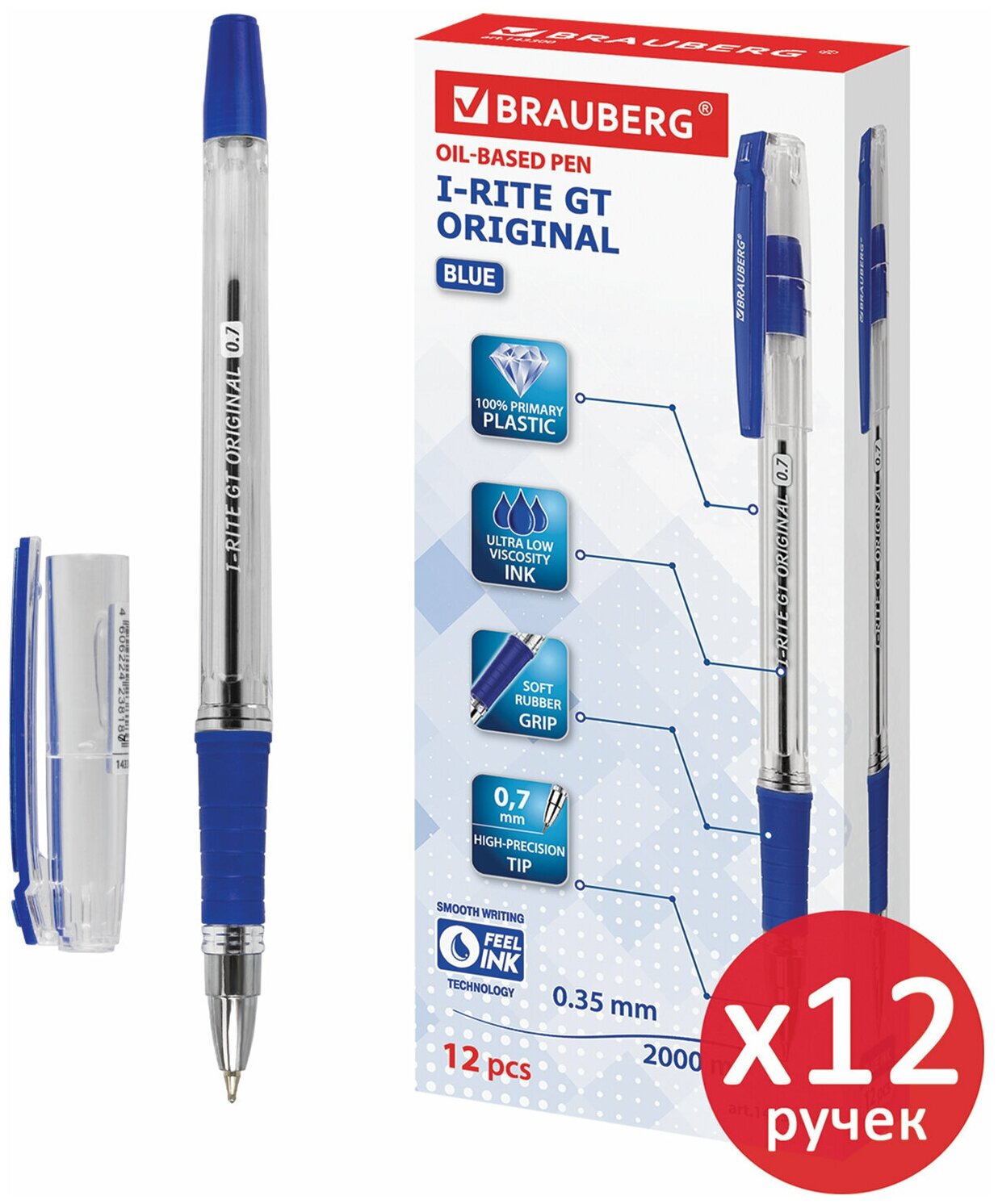 Купить Ручка шариковая масляная с грипом BRAUBERG i-Rite GT, комплект 12 штук, синяя, узел 0,7мм, 880178
