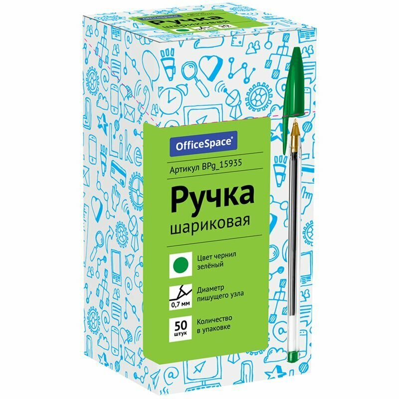 Набор 50 шт. - Ручка шариковая OfficeSpace зеленая, 0,7 мм BPg_15935