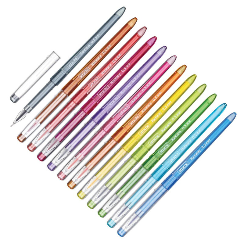 Ручки гелевые цветные Attache, линия письма 0.5 мм, набор 12 шт