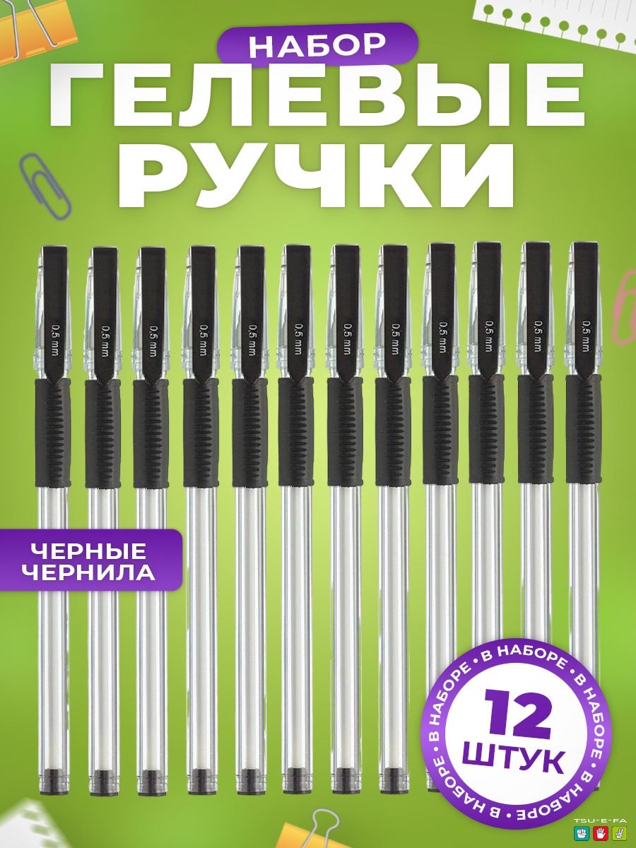 Купить Ручки гелевые черные набор в школу 12 шт.