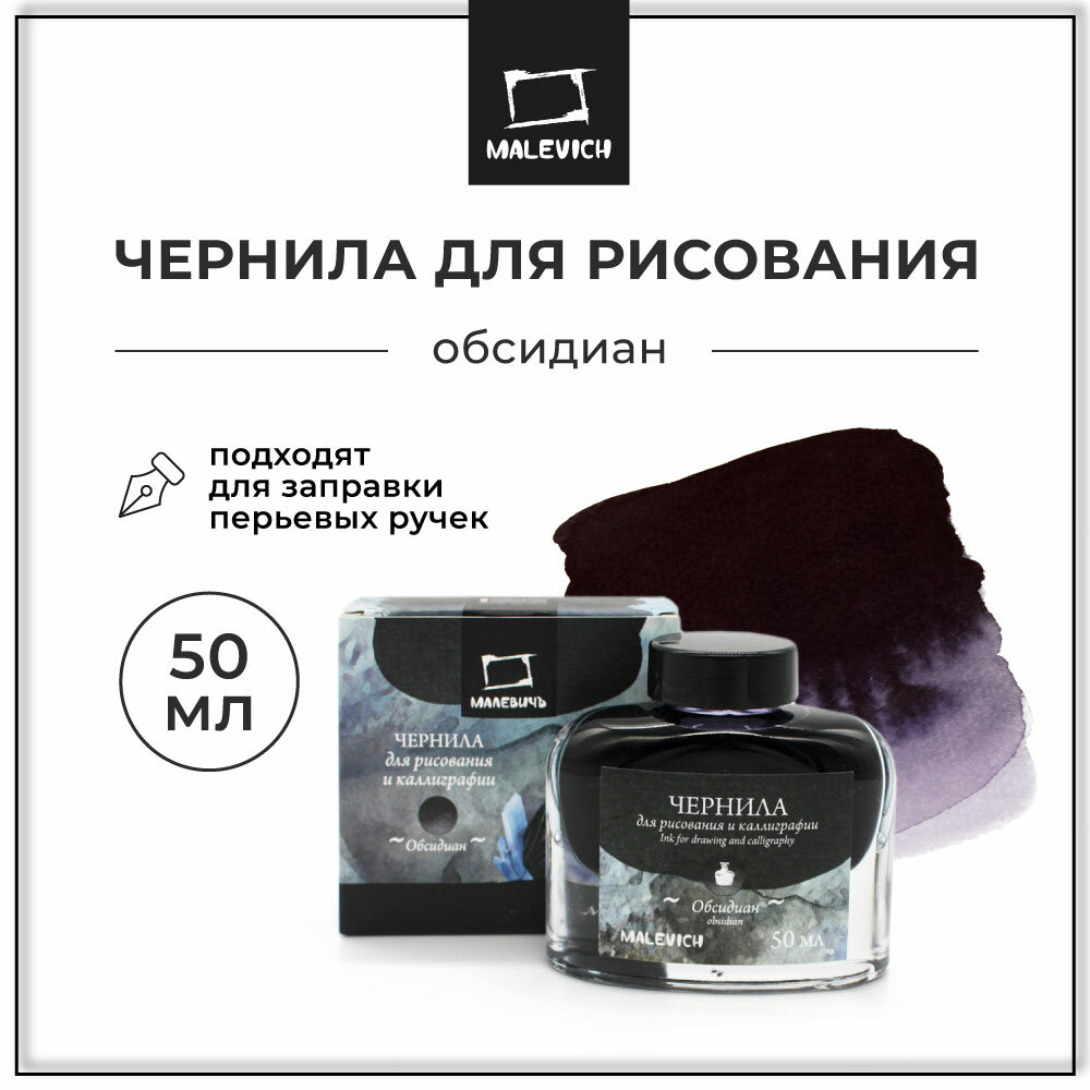 Чернила для рисования и каллиграфии Малевичъ, обсидиан, 50 мл интересное: