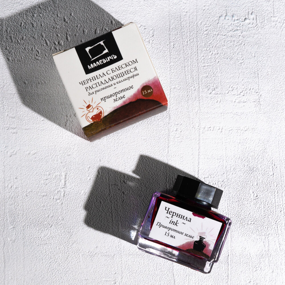 СохранитьЧернила для рисования и каллиграфии Малевичъ, распадающиеся с блеском, приворотное зелье, 15 мл интересное: