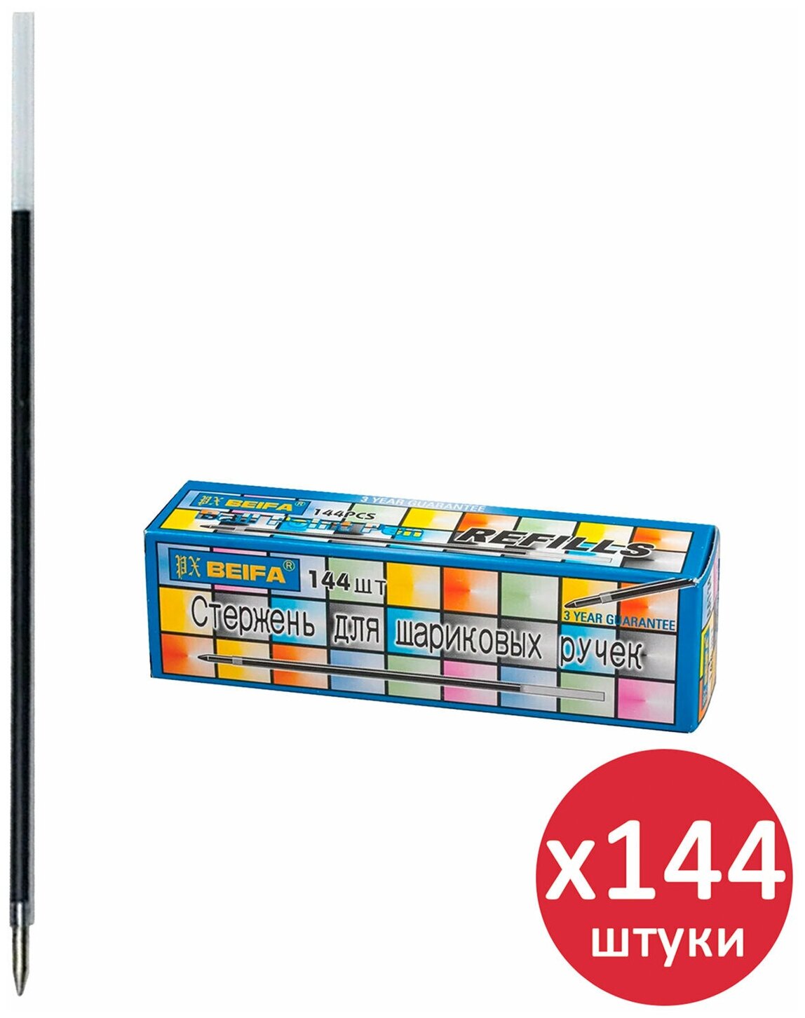 Стержень шариковый BEIFA (Бэйфа), 142 мм, черный, узел 0,7 мм, линия письма 0,5 мм, AA134-BK, 144 шт.