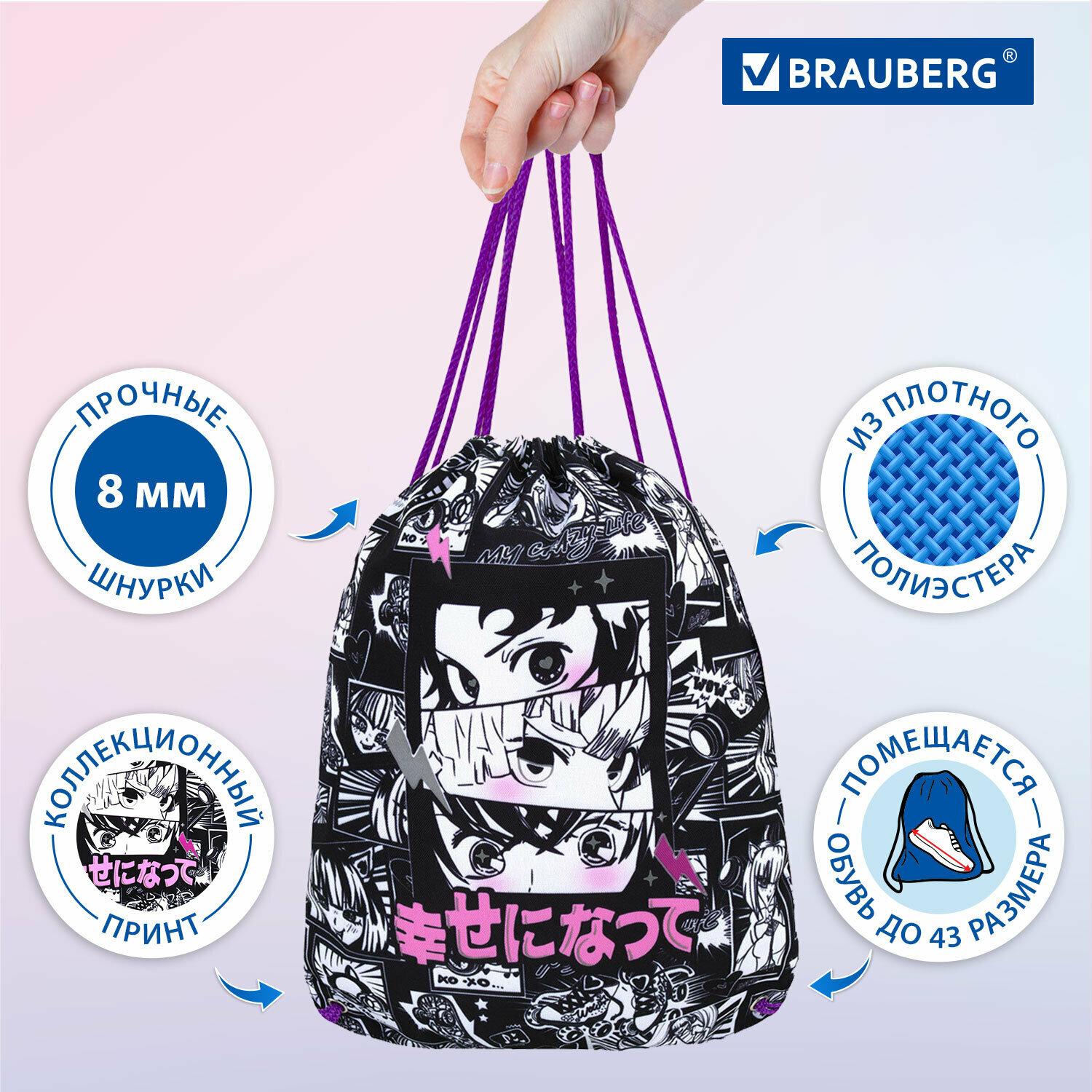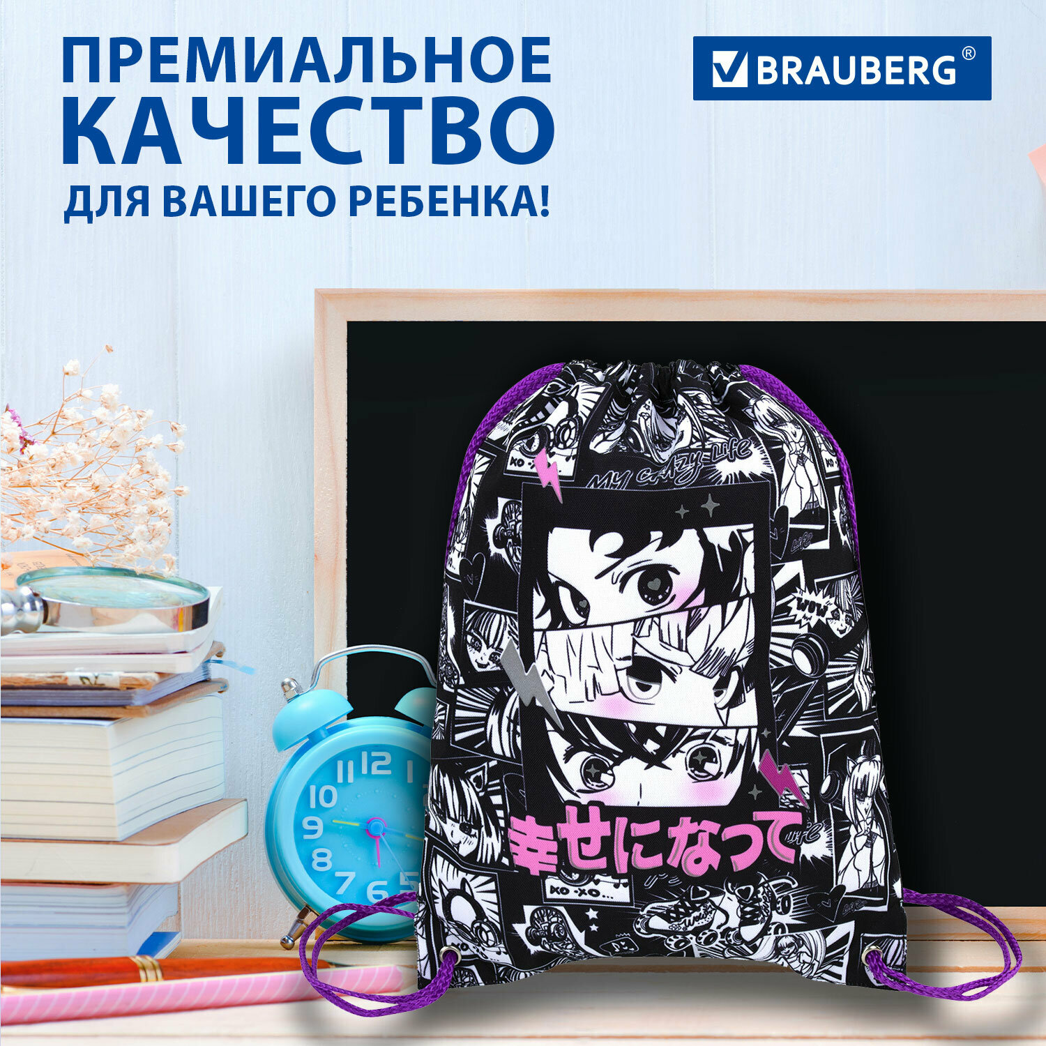 СохранитьМешок для обуви Brauberg Premium, карман, подкладка, светоотражайка, 43х33 см, Anime movie, 272423 интересное: