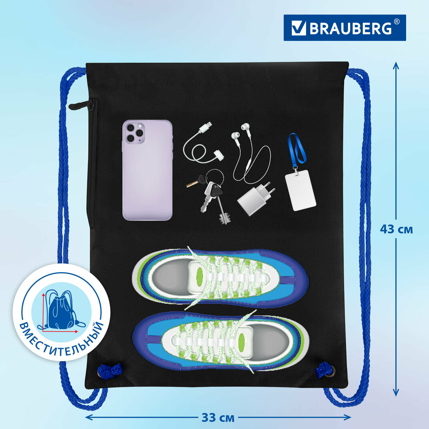 Мешок для обуви BRAUBERG PREMIUM, карман, подкладка, светоотражайка, 43х33 см, Night race, 272425