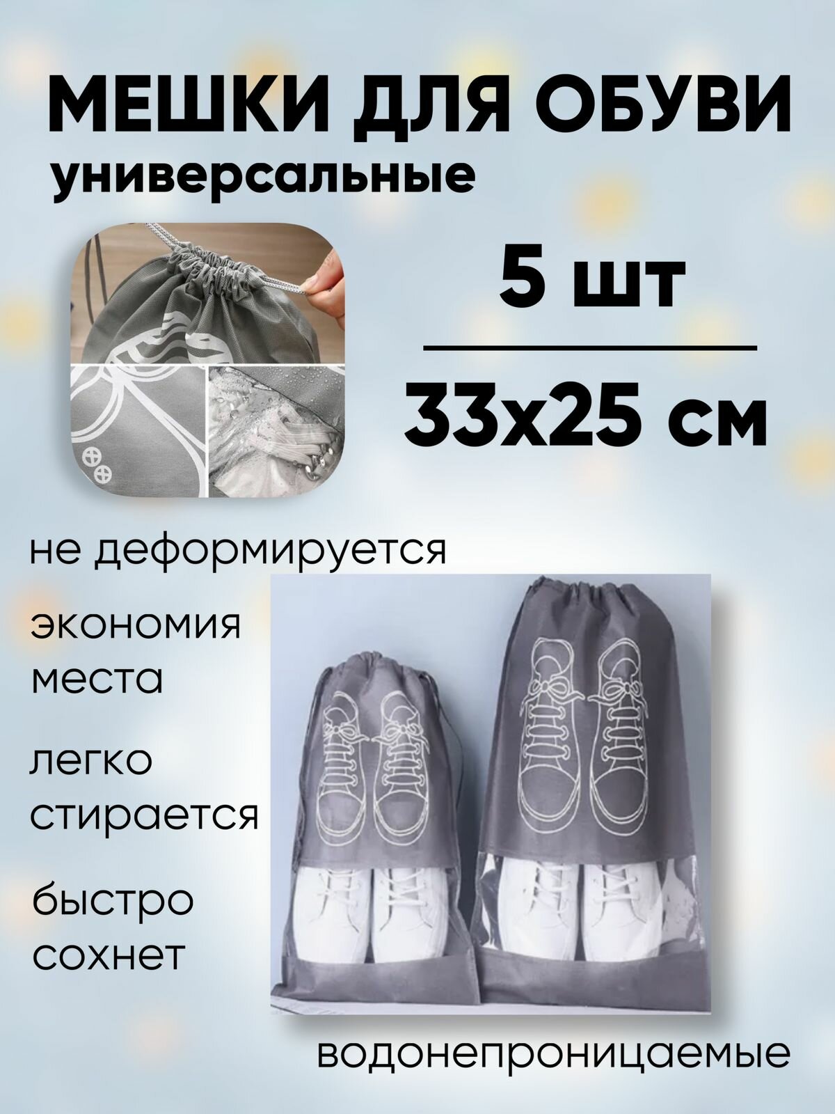 Мешки для обуви 5 штук, 33 х 25 см, серые интересное: