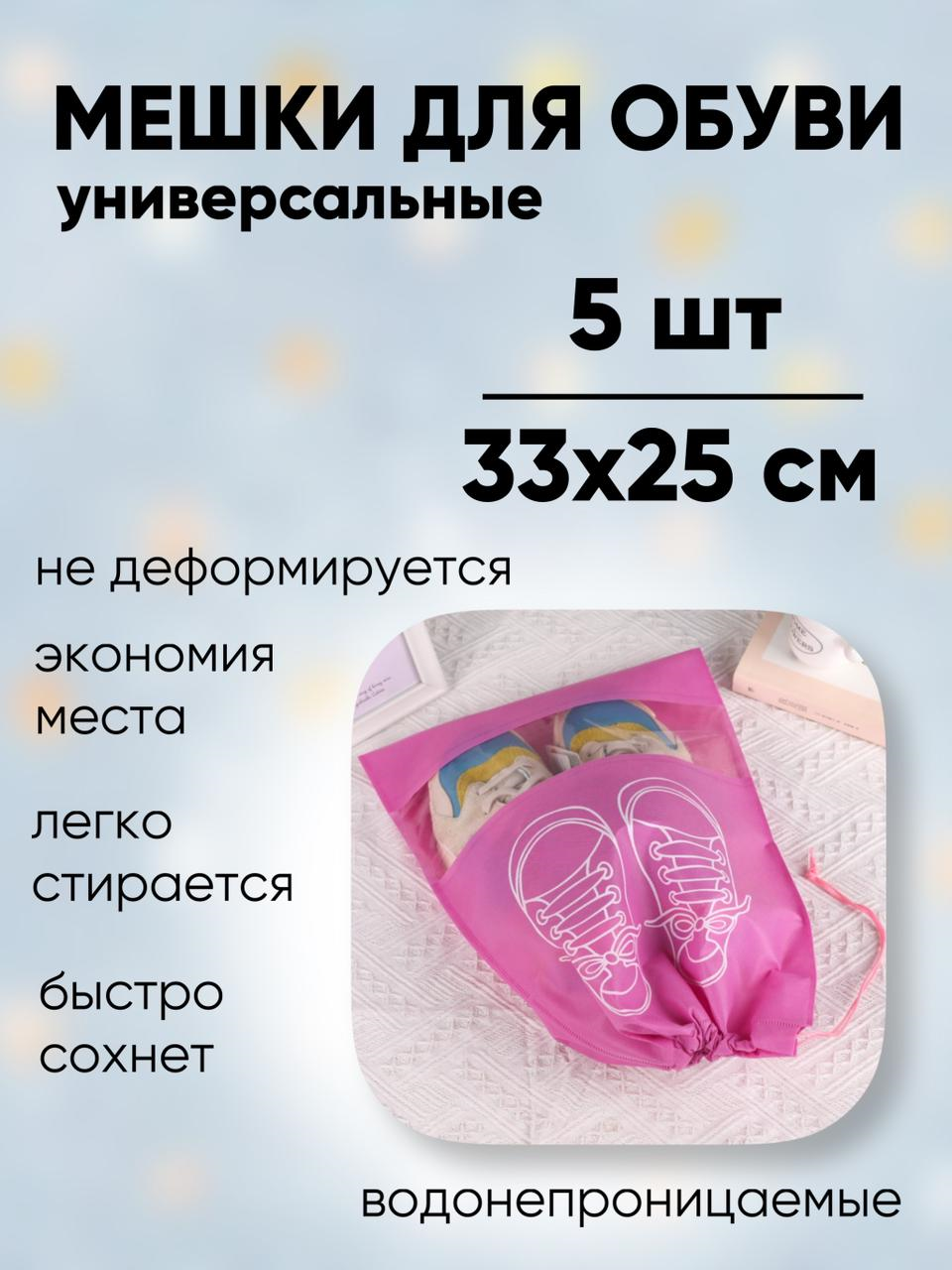 Мешки для обуви 5 штук, 33 х 25 см, розовые интересное: