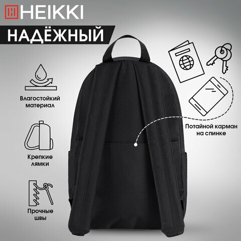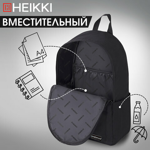 Рюкзак Heikki 272531 ENERGETIC универсальный, эргономичный, Korean, черный, 43х30х16 см