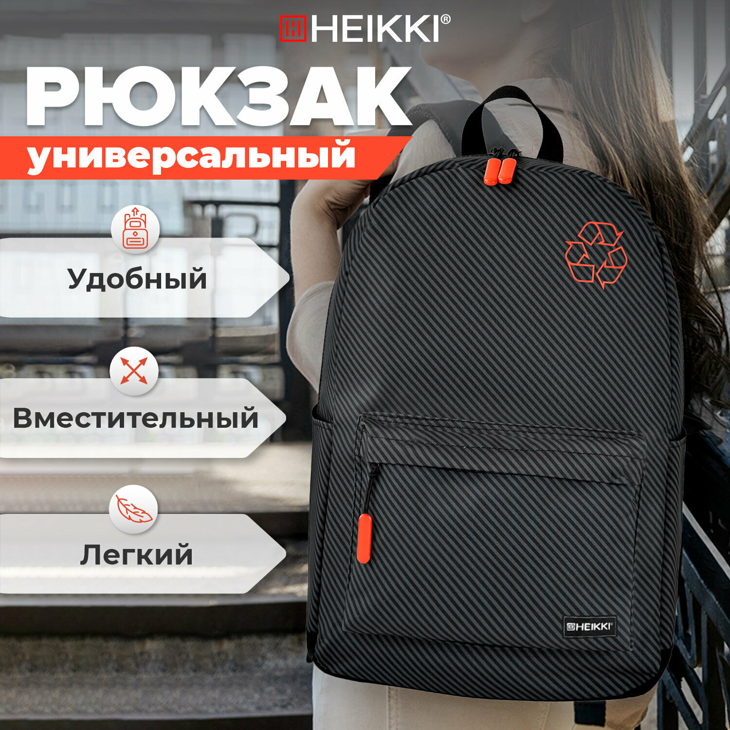 Купить Рюкзак Heikki Energetic (хейки) универсальный, эргономичный, Recycle, черно-серый, 43х30х16 см, 272532