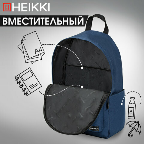 СохранитьРюкзак HEIKKI POSITIVE (хейки) универсальный, карман-антивор, Dark blue, 42х28х14 см, 272552, 1шт в компл. интересное: