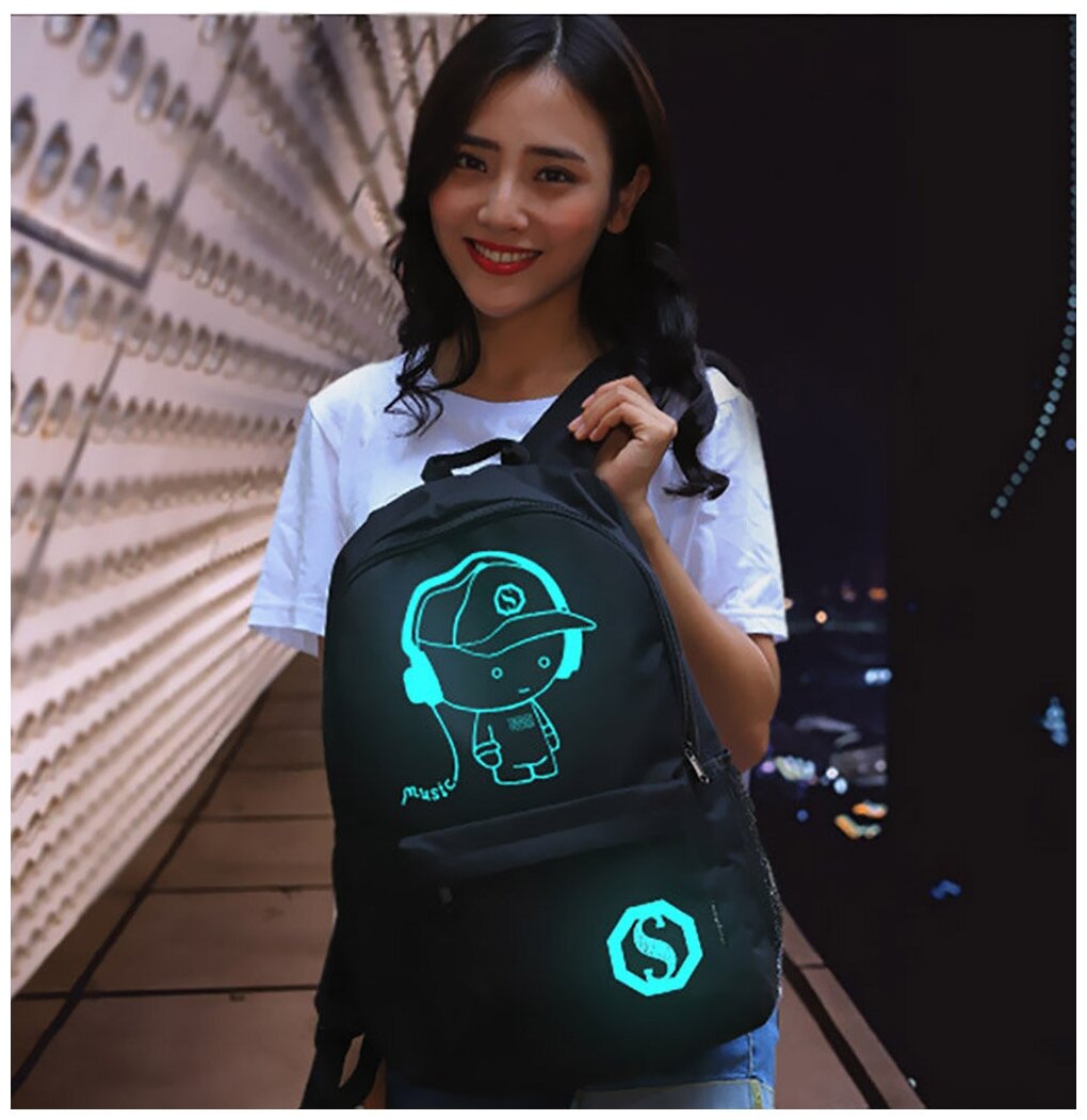 Купить Рюкзак светящийся в темноте для ноутбука, для школы Music Boy, с USB-портом, пеналом и кодовым замком, средний, городской