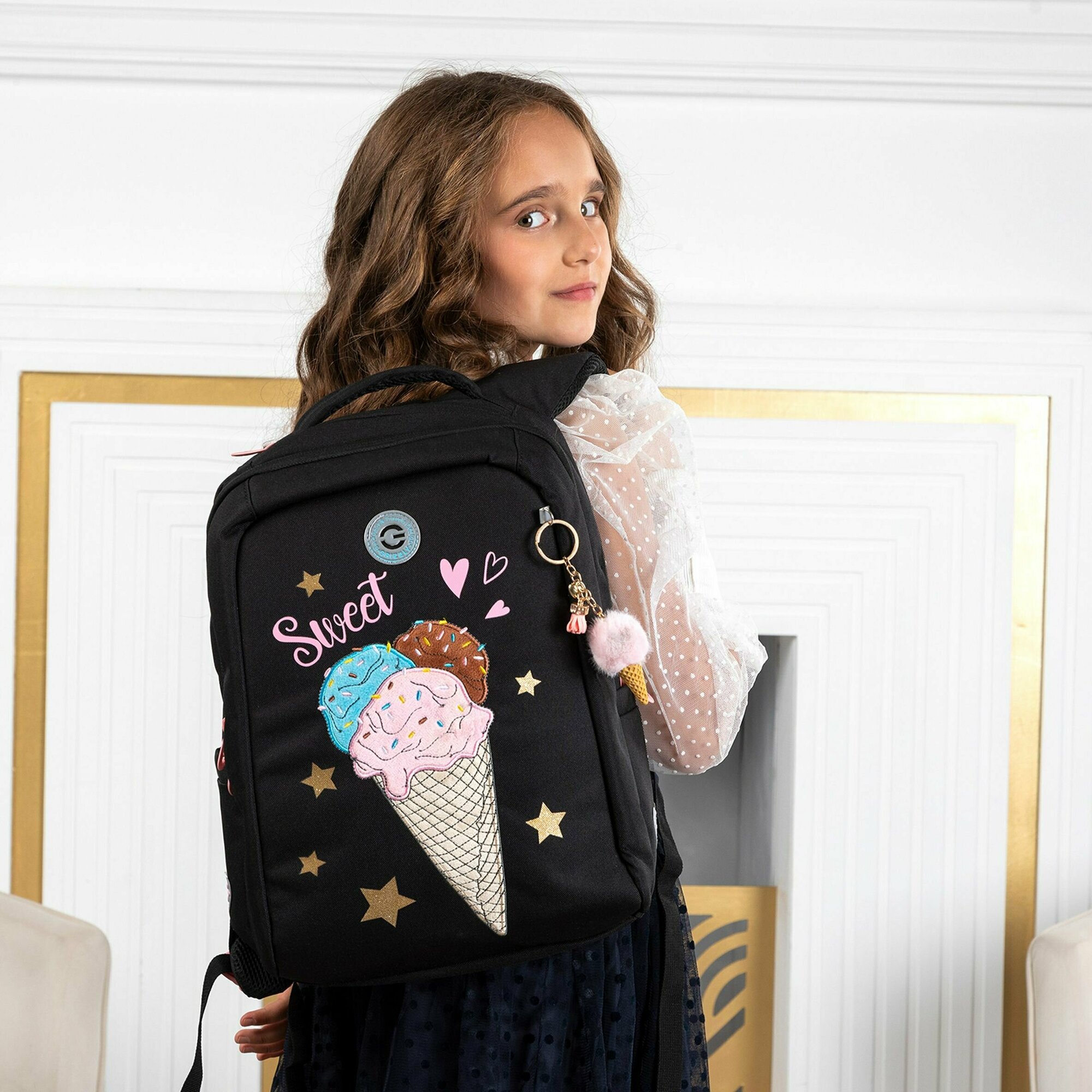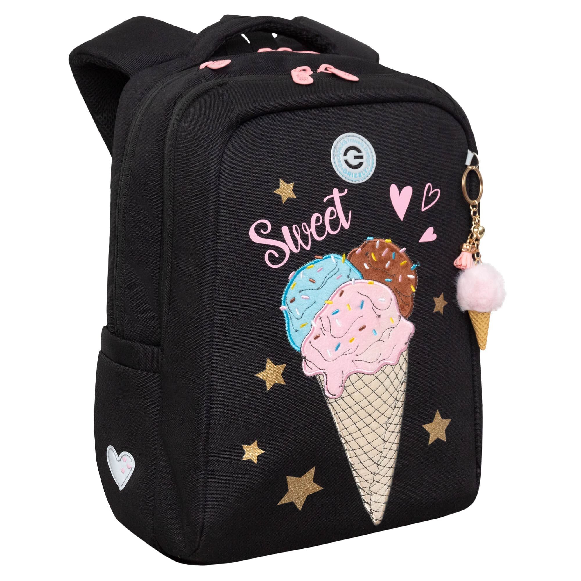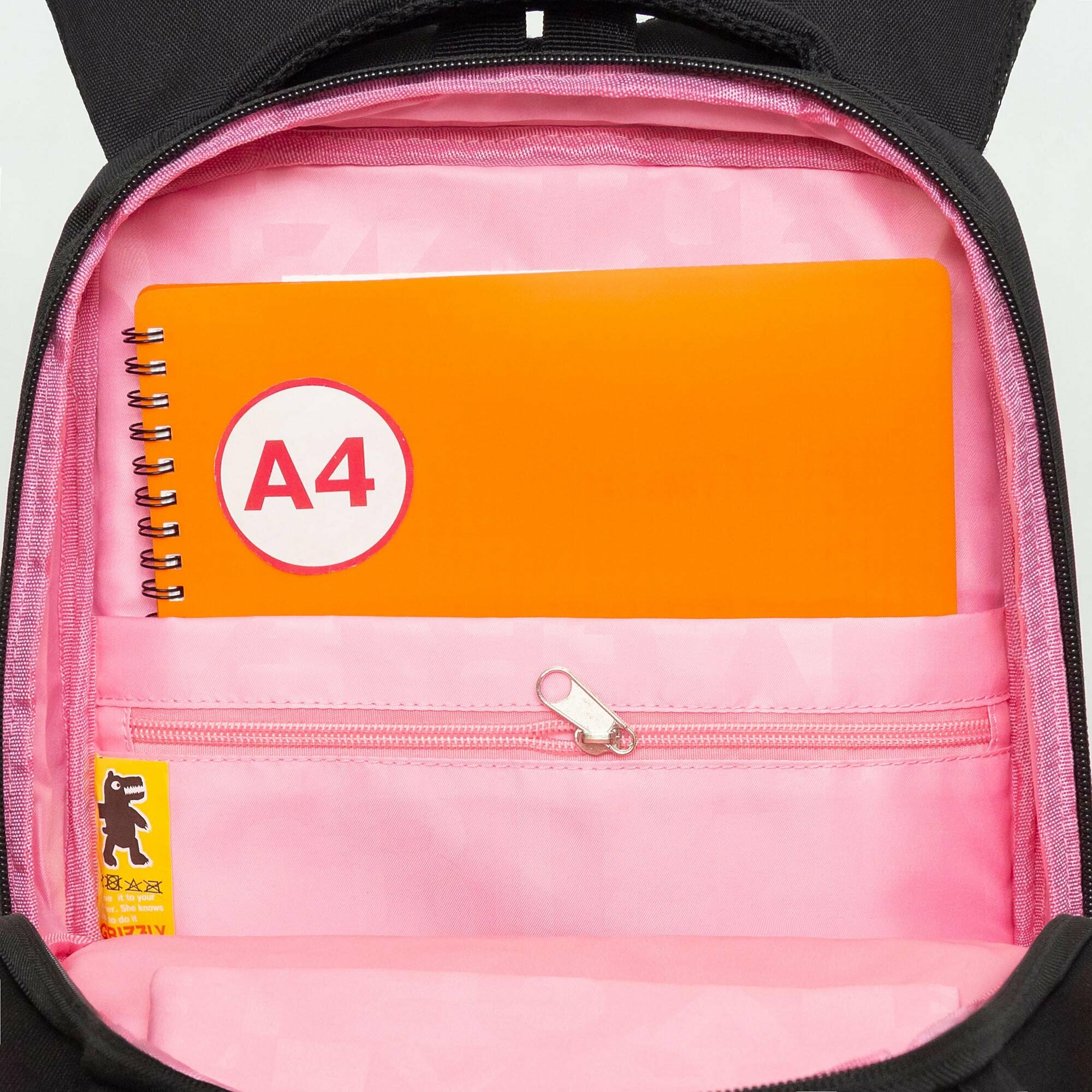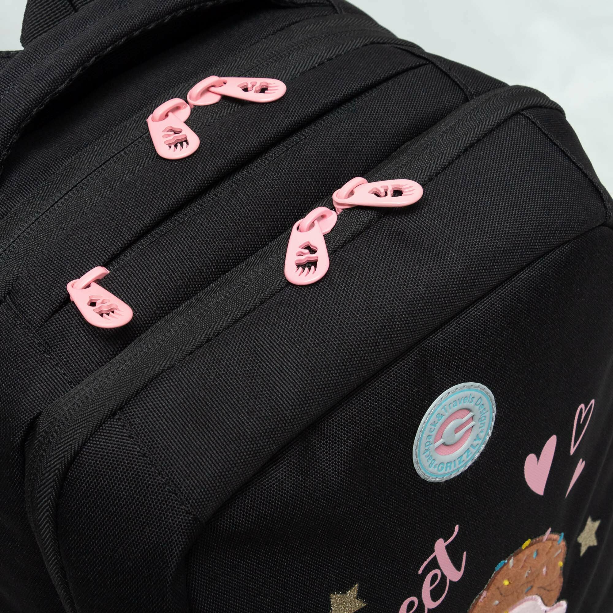 Купить Рюкзак Grizzly школьный, анатомическая спинка, 2 отделения, SWEET, черный, 39х26х17 см, RG-466-3/4