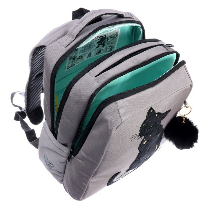 Рюкзак Grizzly школьный, анатомическая спинка, 2 отделения, SWEET, черный, 39х26х17 см, RG-466-3/4