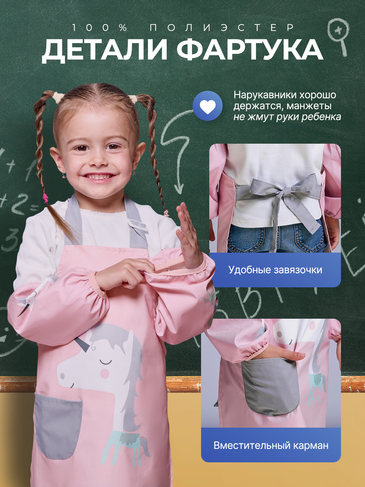 Купить Фартук художественный детский с нарукавниками для труда (с карманом), розовый с единорогом, размер M