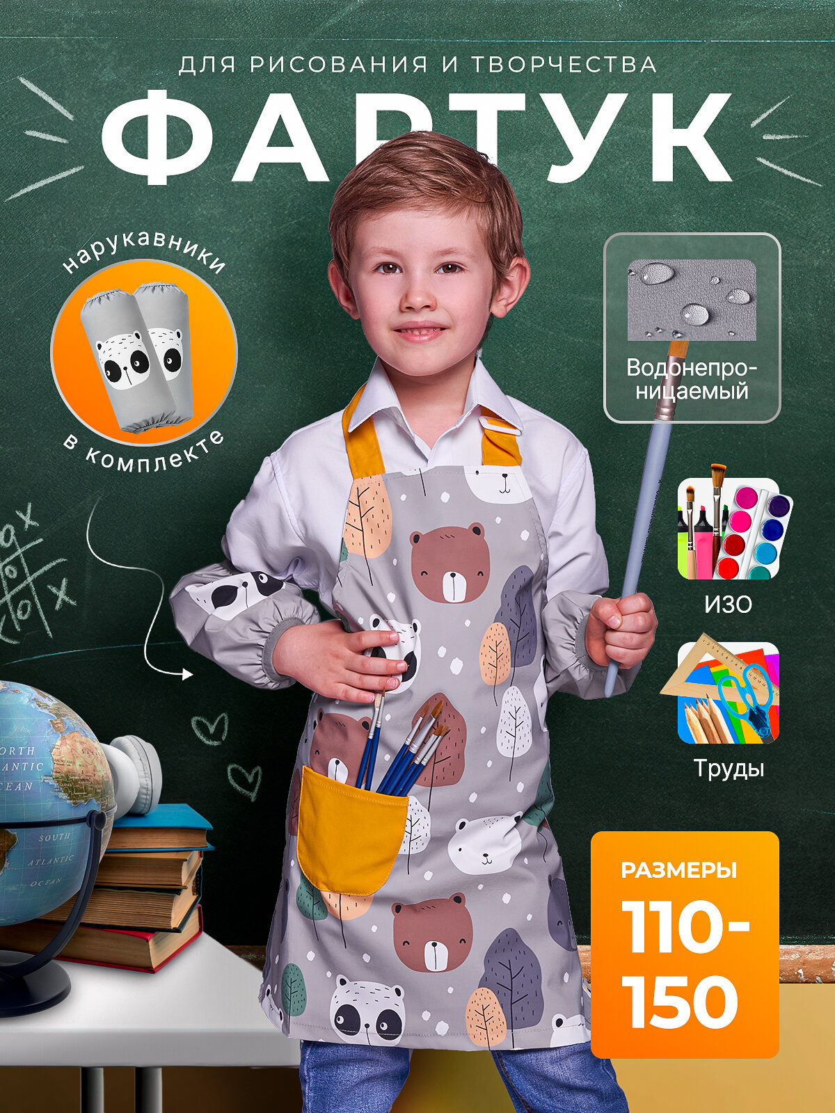 СохранитьФартук художественный детский с нарукавниками для труда (с карманом), серый с пандой, размер M интересное: