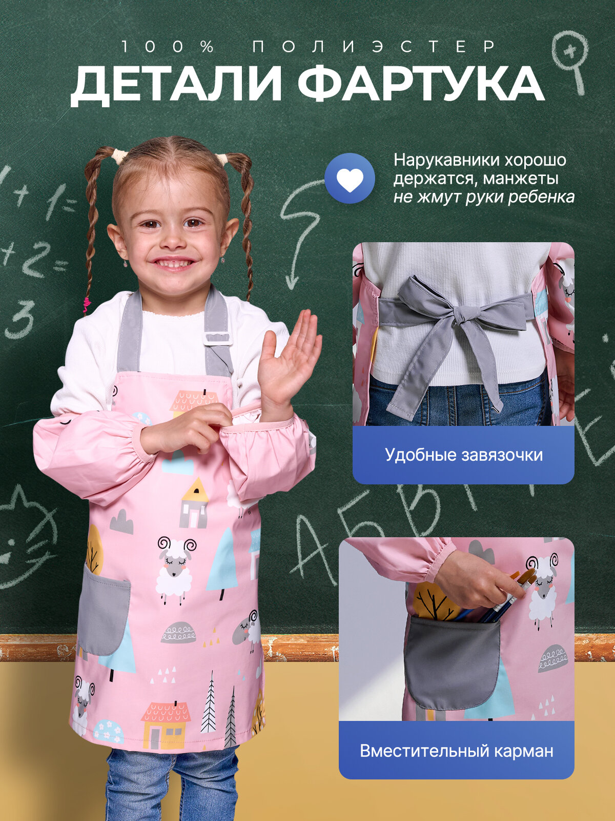 Фартук детский с нарукавниками для рисования и творчества, художественный фартук для труда с карманом, размер M, розовый с овечкой