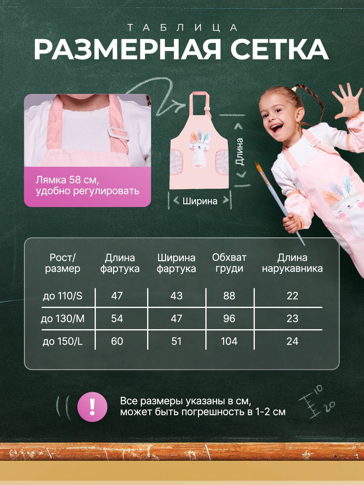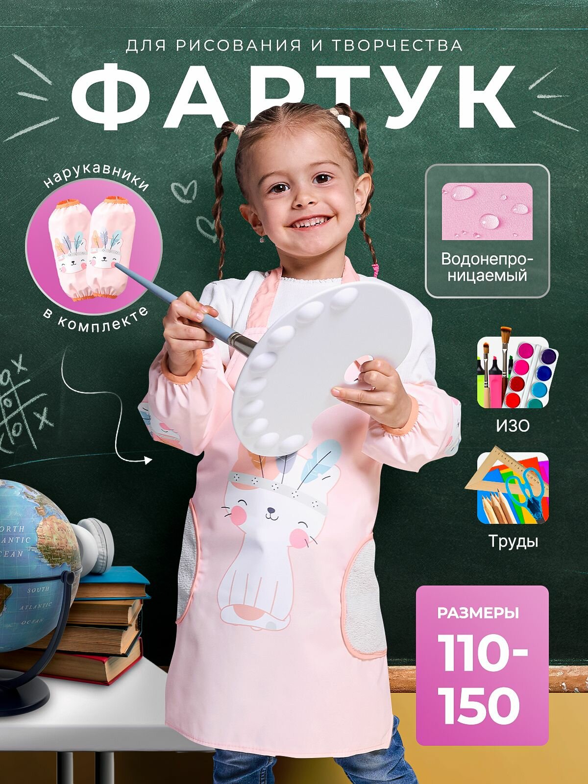 Фартук детский с нарукавниками для рисования и творчества, художественный фартук для труда с карманом, размер L, розовый с овечкой